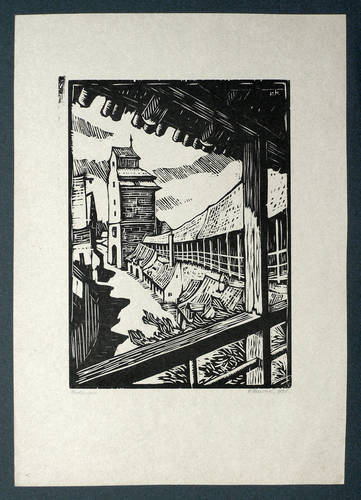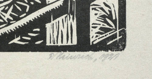 1921. Holzschnitt, in Schwarz, auf Velin. – Originale Künstlergrafik, von Richard Heinrich. – 28,0 x 20,2 cm (Darstellung / Druckstock), 43 x 30 cm (Blatt).