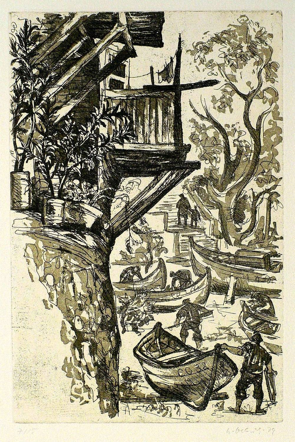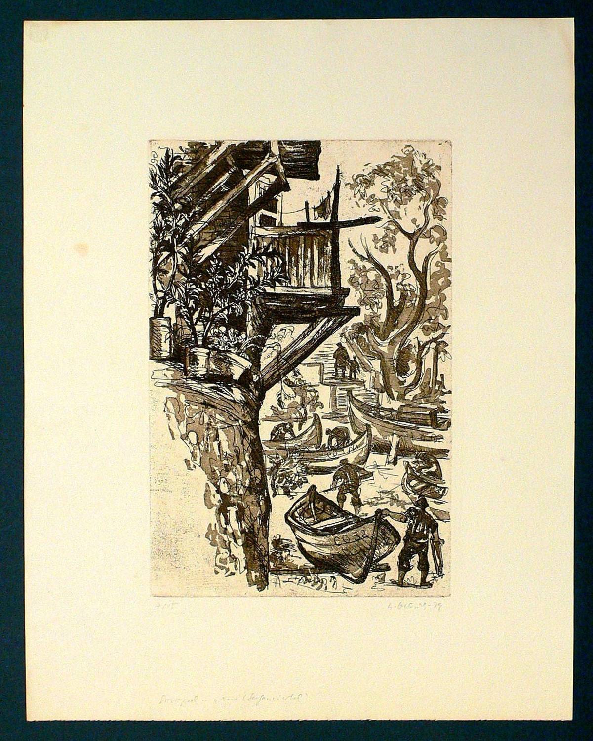 Außerhalb der Platte unten rechts in Blesitift signiert und datiert und links mit eigenhändiger Auflagenbezeichnung versehen. Unten mittig in Bleistift betitelt. – Etwas fleckig. Verso Reste einer ehemaligen Montierung. Guter Zustand.