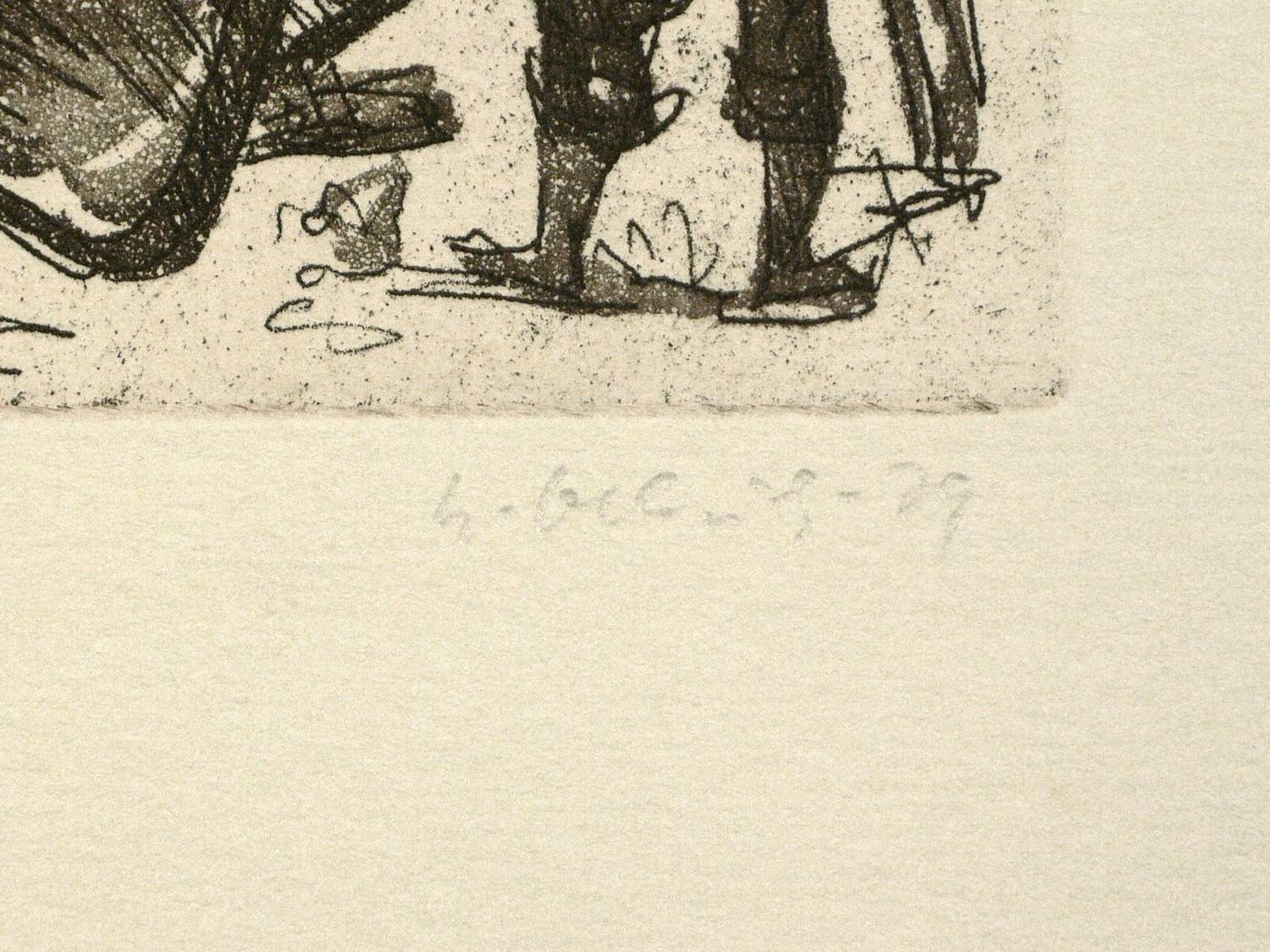 1979. Radierung / Aquatinta. – Originale Künstlergrafik, von Heinz Olbrich. – Auflage Exemplar Nr. 7/15. – 24,3 x 15,9 cm (Darstellung / Platte), 38 x 29 cm (Blatt).