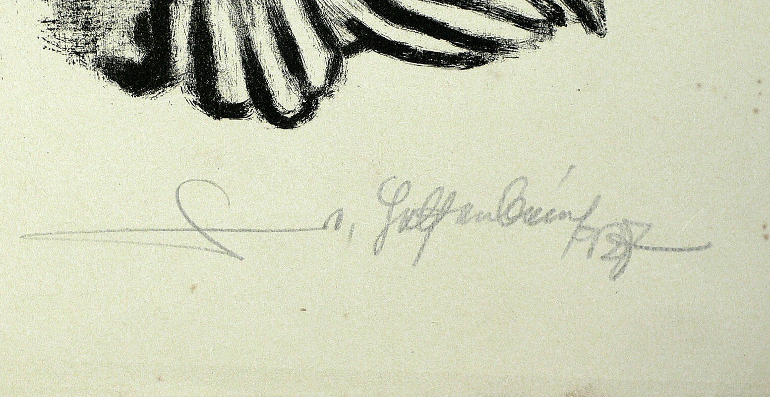1927. Lithografie / Pinsellithografie, in Schwarz, auf hellgelbem Velin. – Originale Künstlergrafik, von Walter Helfenbein. – 35,5 x 25,0 cm (Darstellung / Druckbild), 47 x 33 cm (Blatt).