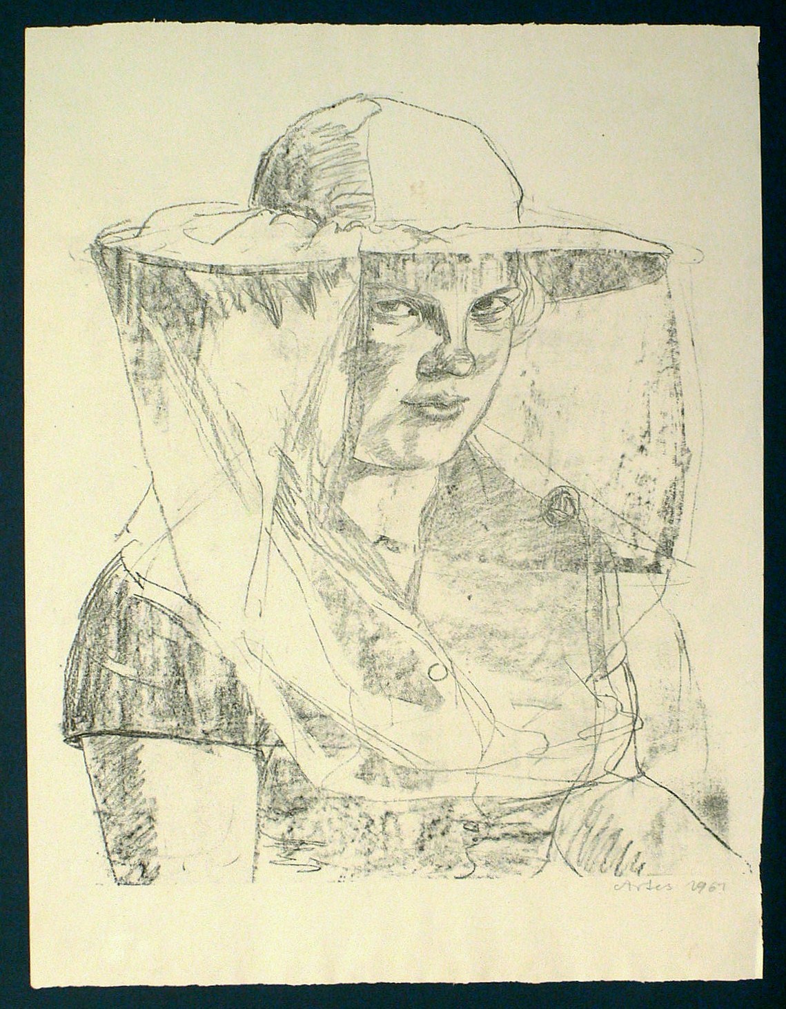 1961. Lithografie / Kreidelithografie, in Schwarz, auf gelbem Velinkarton. – Originale Künstlergrafik, von Sigrid Artes. – 40,0 x 34,5 cm (Darstellung), 49 x 38 cm (Blatt).