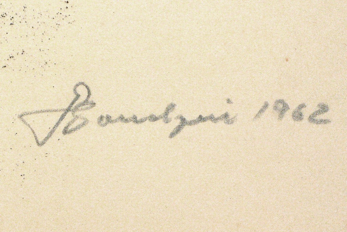 1962. Lithografie / Kreidelithografie, in Schwarz, auf gelblichem Velin. – Originale Künstlergrafik, von Gerhard Bondzin. – 60,5 x 36 cm (Darstellung), 68 x 51 cm (Blatt).