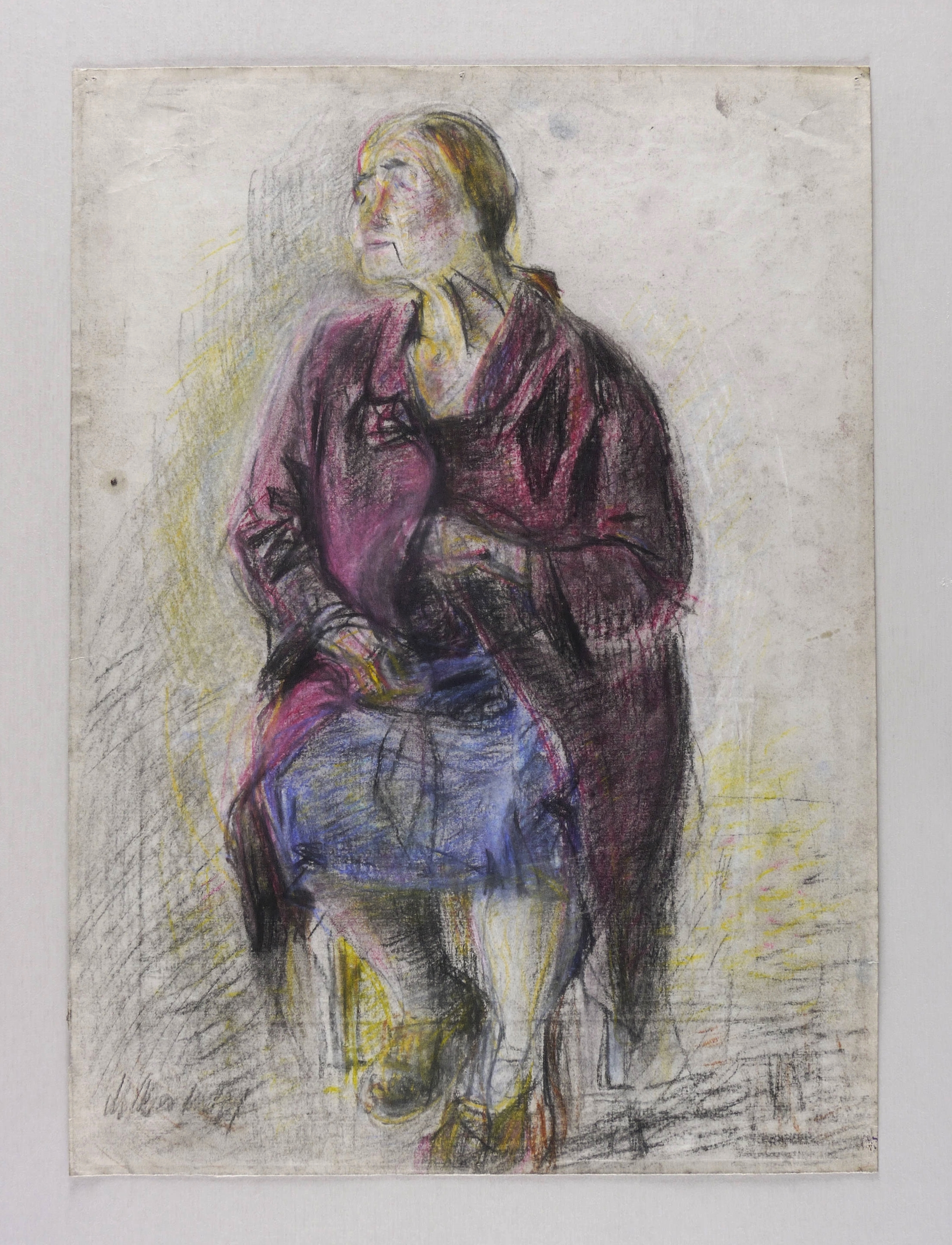 1980-1990. Zeichnung / Farbkreide, auf hellgrauem Bütten. – Originale Künstlergrafik, von Maria Adler-Krafft. – Unikat. – 43,5 x 31,5 cm (Darstellung / Blatt).