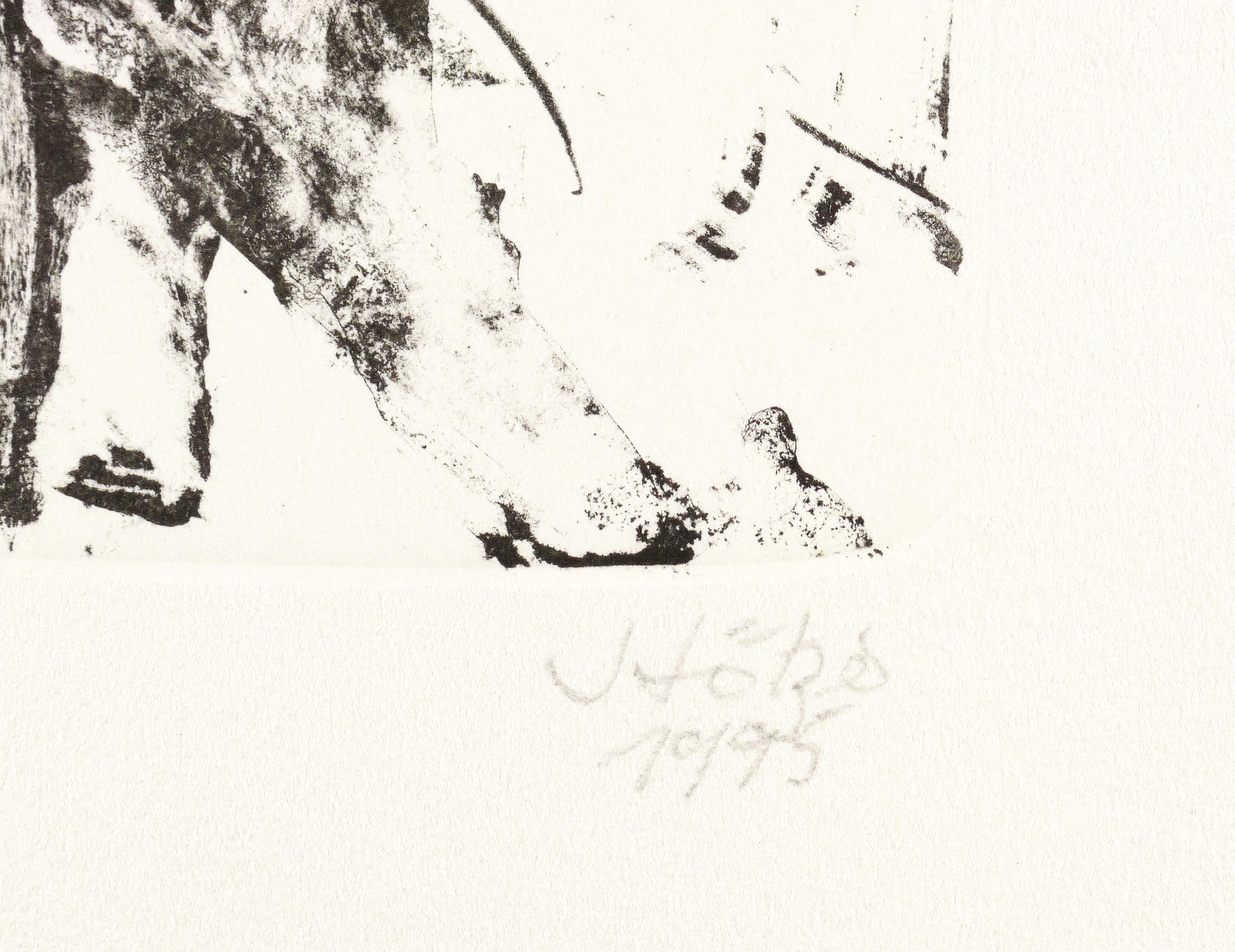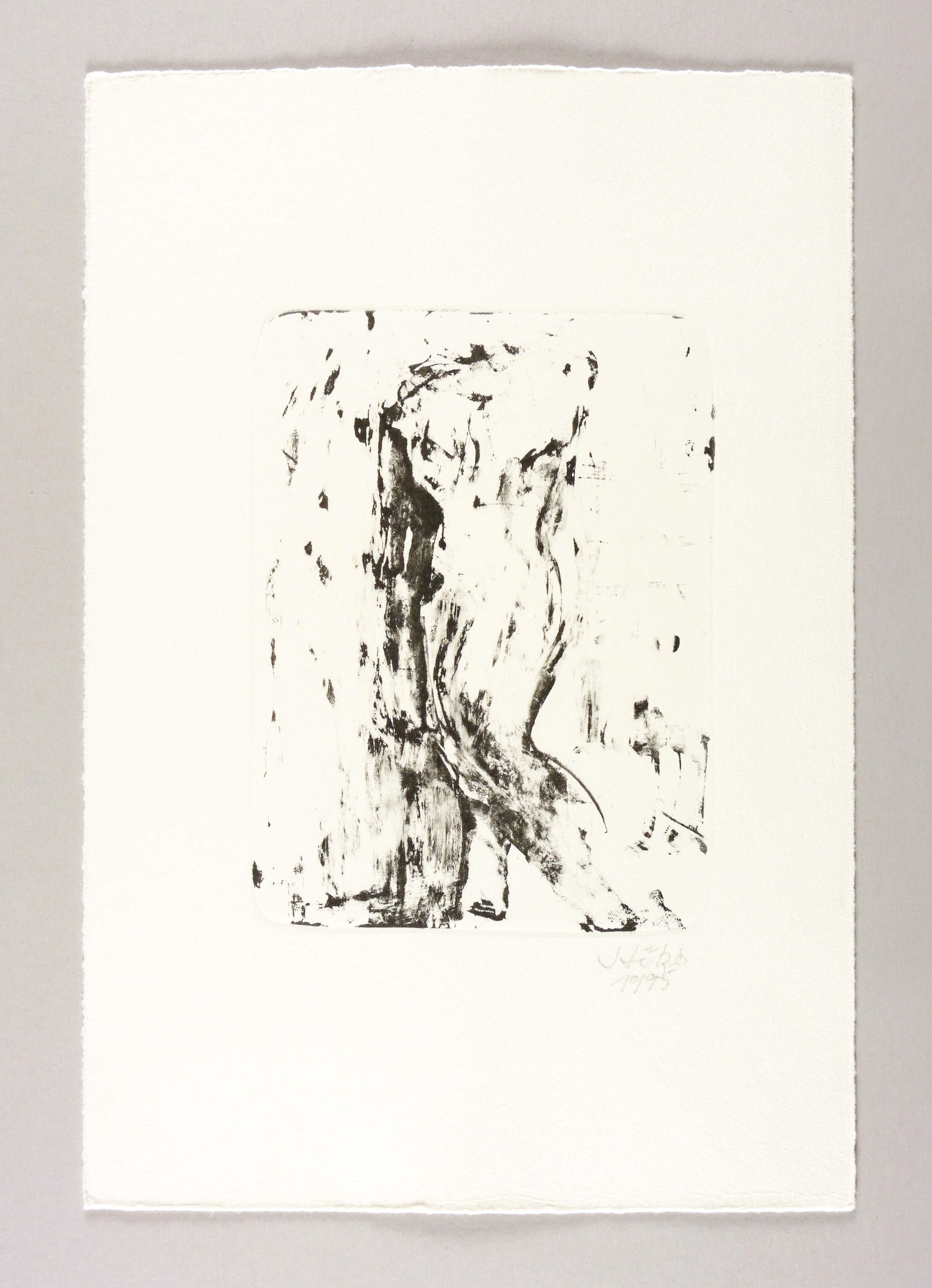 1995. Lithografie / Pinsellithografie, geschabt, in Schwarz, auf hellchamois Bütten. – Originale Künstlergrafik, von Werner Stötzer. – 21,5 x 16,2 cm (Darstellung / Stein), 40 x 27 cm (Blatt).