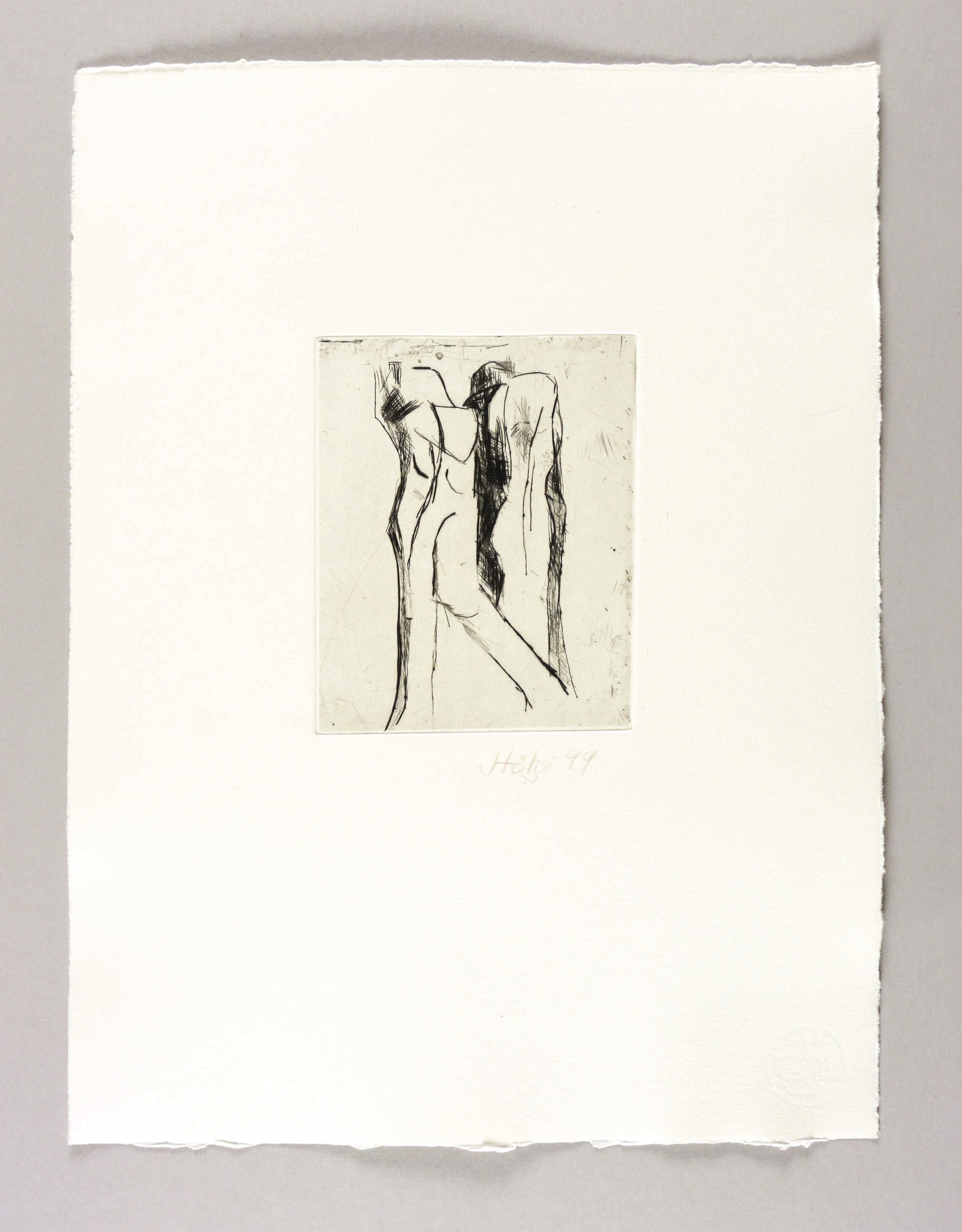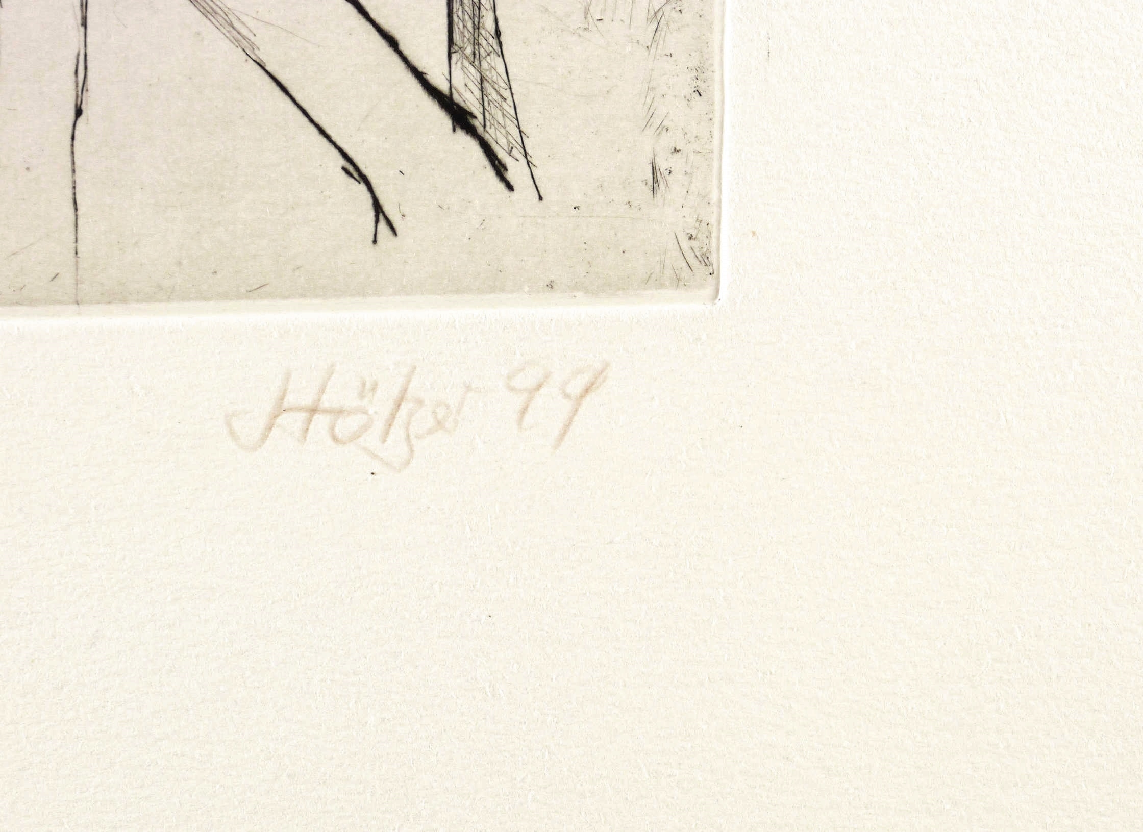 1999. Radierung / Kaltnadel, in Schwarz, mit Plattenton, auf hellchamois Hahnemühle-Bütten. – Originale Künstlergrafik, von Werner Stötzer. – 15,0 x 12,0 cm (Darstellung / Platte), 41 x 31 cm (Blatt).