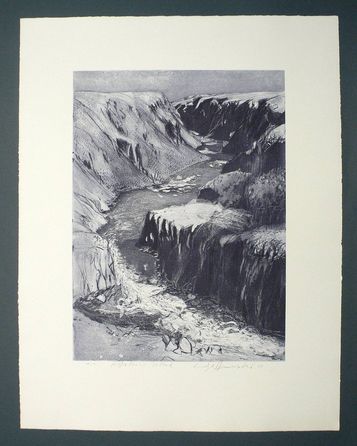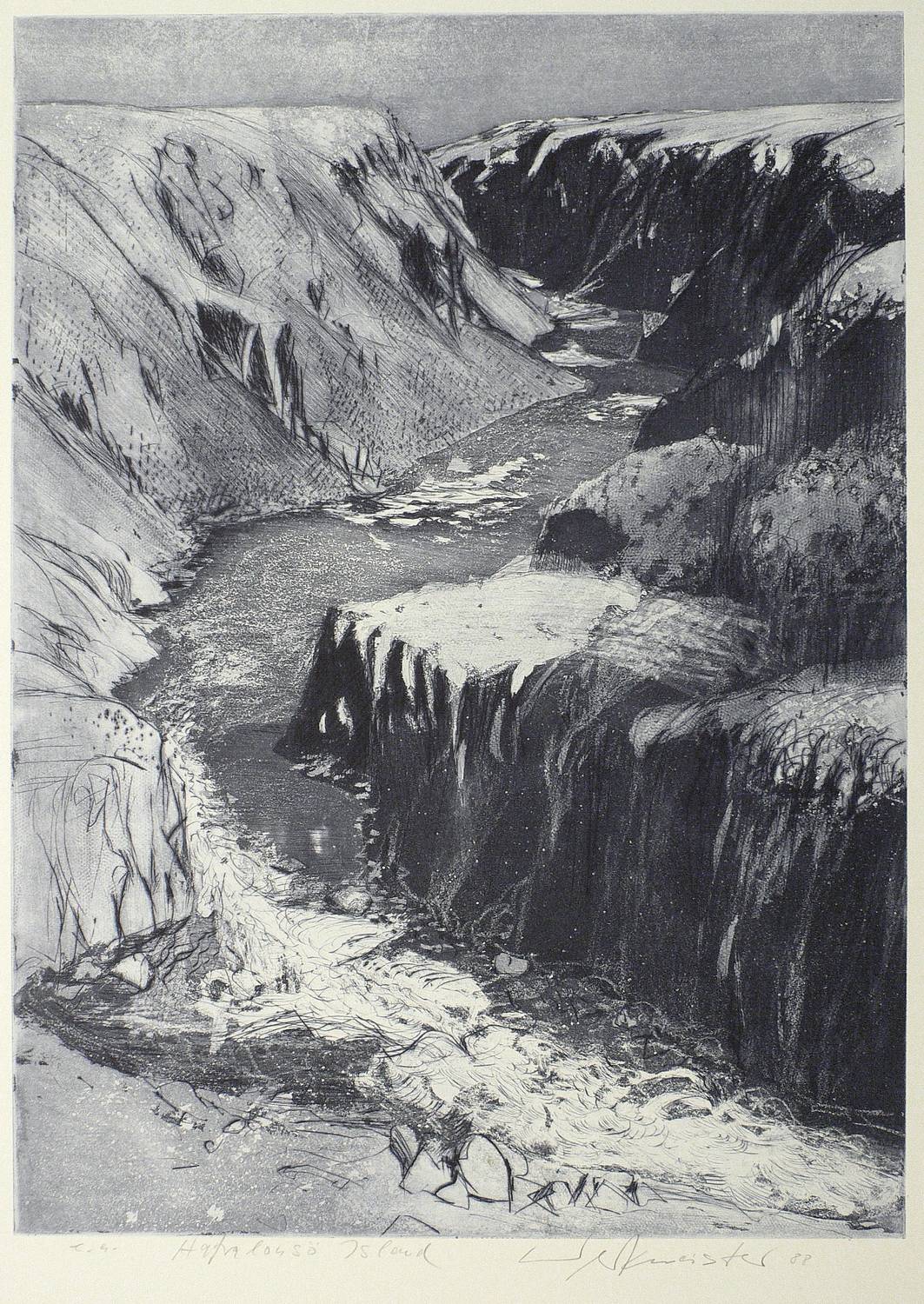 Wolfgang Werkmeister (*1941 Berlin, lebt und arbeitet in Hamburg). Deutscher Grafiker, bedeutender Vertreter der zeitgenössischen Radierkunst. 1960-64 Besuch der Akademie der Bildenden Künste Stuttgart, Fachklasse für freie Grafik und Illustration bei Gunther Böhmer. 1965 Besuch der Fachhochschule für Gestaltung Hamburg bei W. M. Busch und S. Oelke. 1966-68 tätig als Pressezeichner. 1972/73 Dozent an der Fachhochschule für Gestaltung, Hamburg. Zahlreiche Auslanfsaufenthalte und Stipendien in Marokko, USA, auf den Kanarischen Inseln, etc. 2001 Kunstpreis der Stadt Baden-Baden. Zentrales Ausdrucksmittel ist die Radierung, genauer die Aquatinta, in der er Landschaft als Hauptmotiv regelrecht zelebriert und in technisch ebenso aufwändigen wie raffinierten Blättern druckgrafisch umsetzt. Stilistisch siedelt sein Werk zwischen einem geschickt eingesetzten Fotorealismus und der lakonischen Bildsprache eines Ansel Adams.