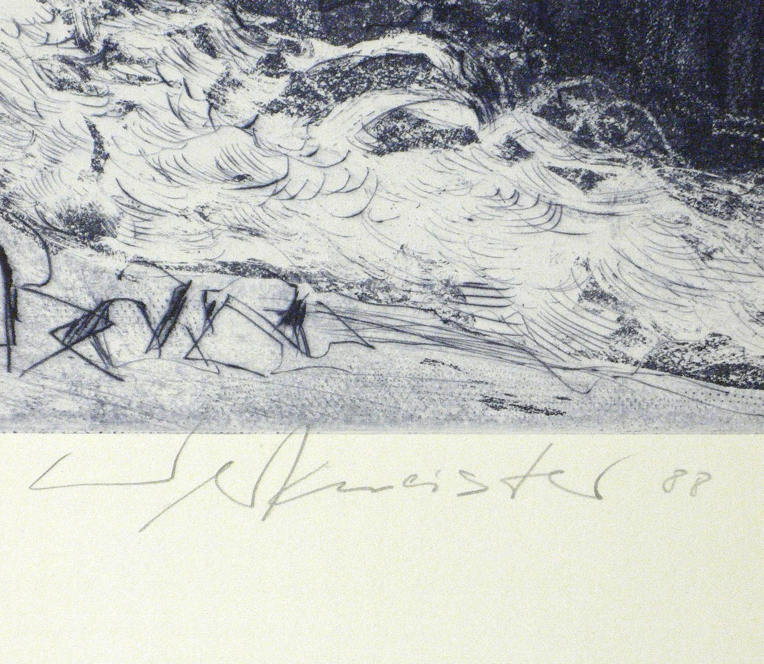 1988. Radierung / Aquatinta, in Blauschwarz, auf Rives-Bütten. – Von Wolfgang Werkmeister. – Künstlerexemplar (e.a.). – 45,5 x 33,2 cm (Darstellung / Platte), 65X50,5 x cm (Blatt).