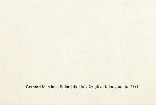 Lammek L 56. – Verso typografisch bezeichnet: ″Gerhard Marcks, Selbstbildnis, Original- Lithographie, 1971″. – Aus der unsignierten Auflage für die Galerie Nierendorf. – Sehr guter Erhaltungszustand.