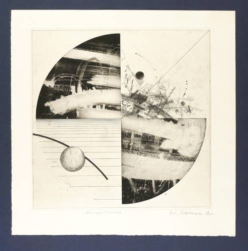 1979. Radierung / Strichätzung & Aquatinta, in Schwarz, auf Büttenkarton. – Originale Künstlergrafik, von Wolfgang E. Biedermann. – Auflage Exemplar Nr. 6/50. – 39,7 x 39,8 cm (Darstellung / Einfassungslinie), 40,7 x 40,7 cm (Platte), 51 x 51 cm (Blatt).