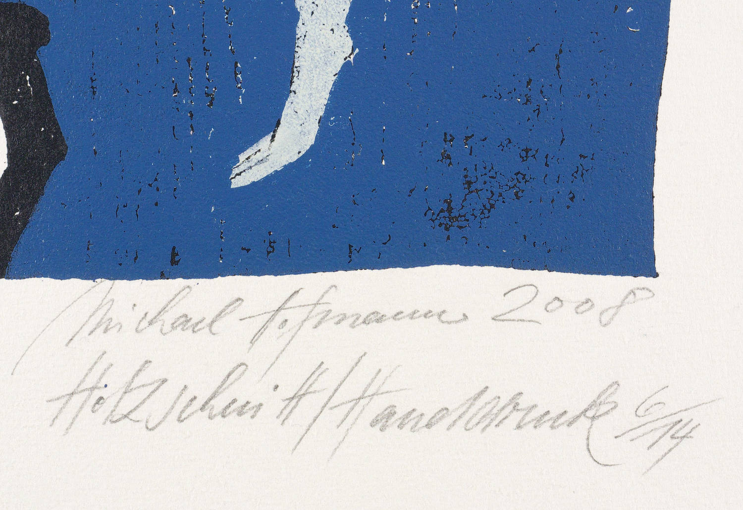 2008. Farbholzschnitt, auf Hahnemühle-Bütten. – Originale Künstlergrafik, von Michael Hofmann. – Auflage Exemplar Nr. 6/14. – 49,2 x 34,5 cm (Darstellung / Druckstock), 78 x 53 cm (Blatt).