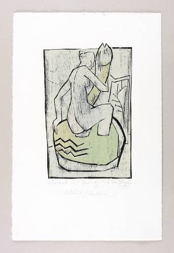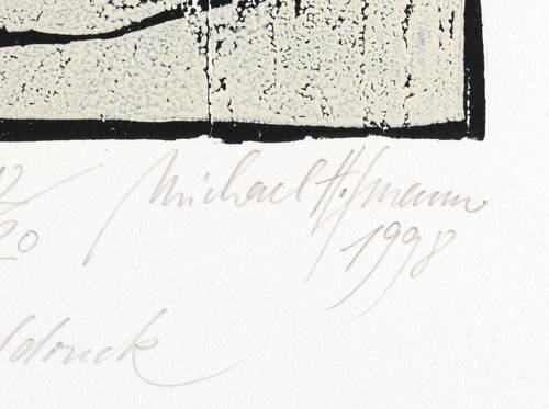 1998. Farbholzschnitt, auf Bütten. – Originale Künstlergrafik, von Michael Hofmann. – Auflage Exemplar Nr. 12/20. – 30 x 19,5 cm (Darstellung / Druckstock), 50 x 33 cm (Blatt).
