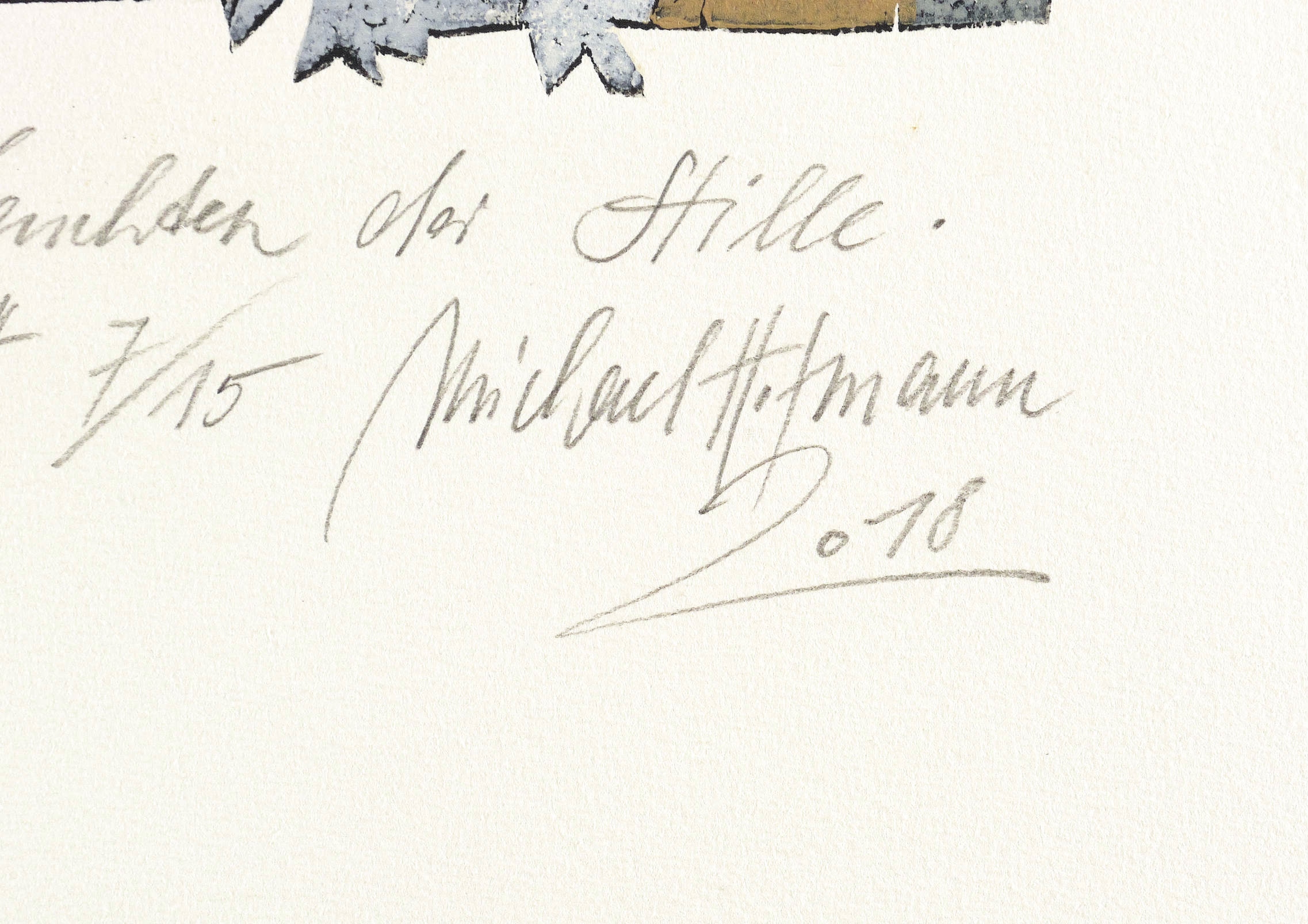 2018. Farbholzschnitt, auf Bütten. – Originale Künstlergrafik, von Michael Hofmann. – Auflage Exemplar Nr. 7/15. – 38,9 x 23,5 cm (Darstellung / Druckstock), 65 x 33 cm (Blatt).