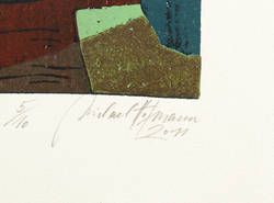 2011. Farbholzschnitt, auf Bütten. – Originale Künstlergrafik, von Michael Hofmann. – Auflage Exemplar Nr. 5/10. – 48,0 x 26,8 cm (Darstellung / Druckstock), 66 x 43,5 cm (Blatt).