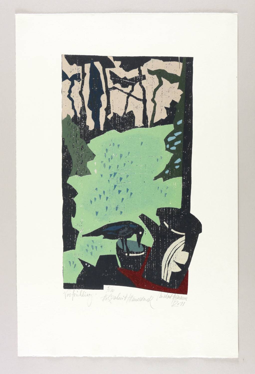 2011. Farbholzschnitt, auf Bütten. – Originale Künstlergrafik, von Michael Hofmann. – Auflage Exemplar Nr. 5/10. – 40,0 x 28,8 cm (Darstellung / Druckstock), 70,5 x 45,5 cm (Blatt).