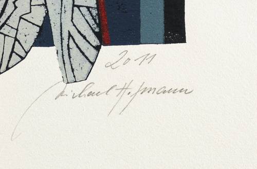 2011. Farbholzschnitt, auf Bütten. – Originale Künstlergrafik, von Michael Hofmann. – Auflage Exemplar Nr. 9/12. – 52,4 x 30,3 cm (Darstellung / Druckstock), 73 x 44 cm (Blatt).