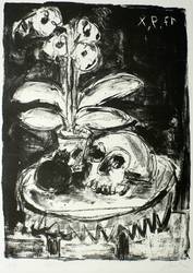 Zesch, Silvio -  -  - Stillleben mit Orchidee und Totenschädel