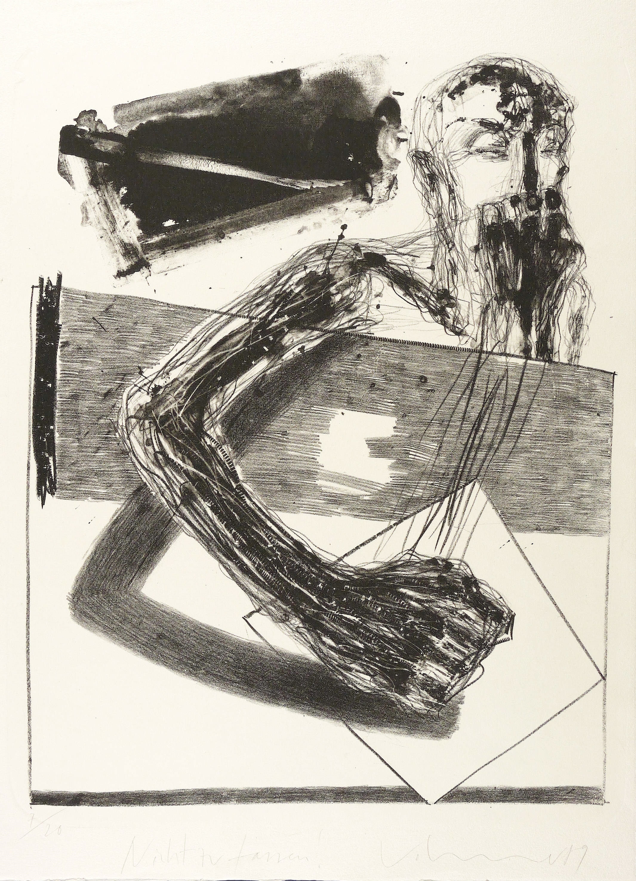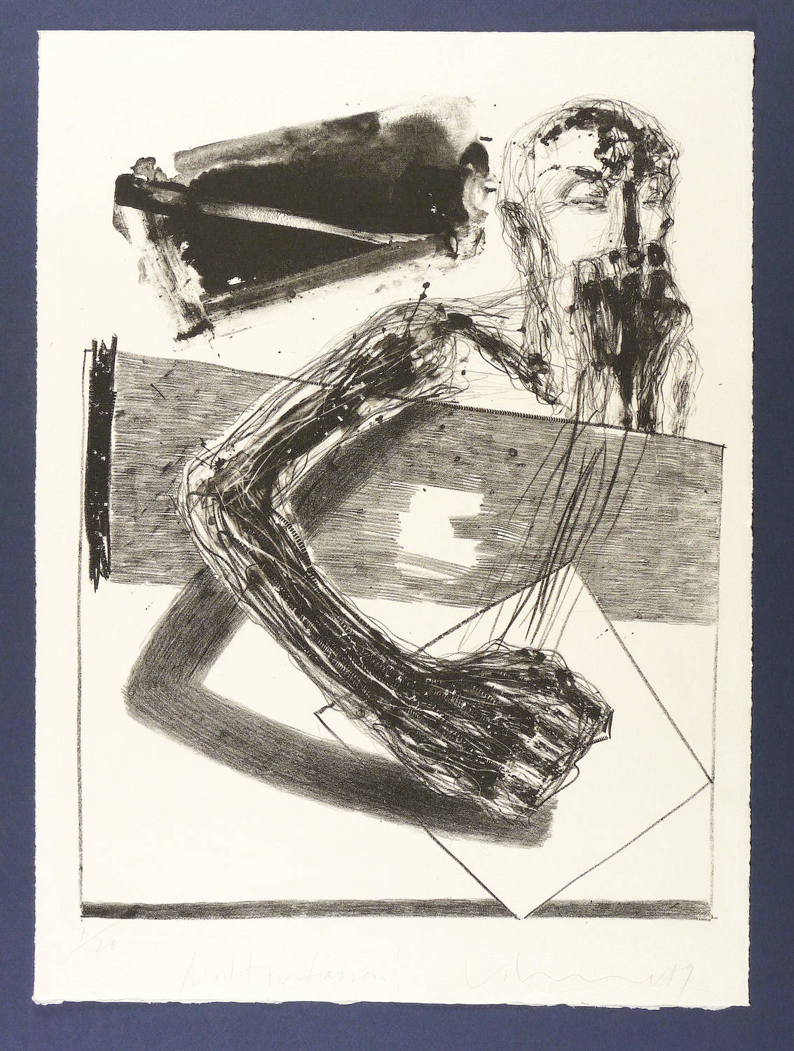 1989. Lithografie / Kreide- & Pinsellithografie, auf hellchamois Bütten. – Originale Künstlergrafik, von Steffen Volmer. – Auflage Exemplar Nr. 7/20. – 45,4 x 35,5 cm (Darstellung), 54 x 40 cm (Blatt).