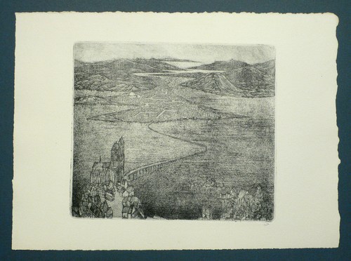 1924. Radierung / Strichätzung, in Schwarz, auf Kupferdruckkarton. – Originale Künstlergrafik, von Alexander Friedrich. – Auflage Exemplar Nr. 31/150. – 9,0 x 34,6 cm (Darstellung / Platte), 14,5 x 46,0 cm (Blatt),