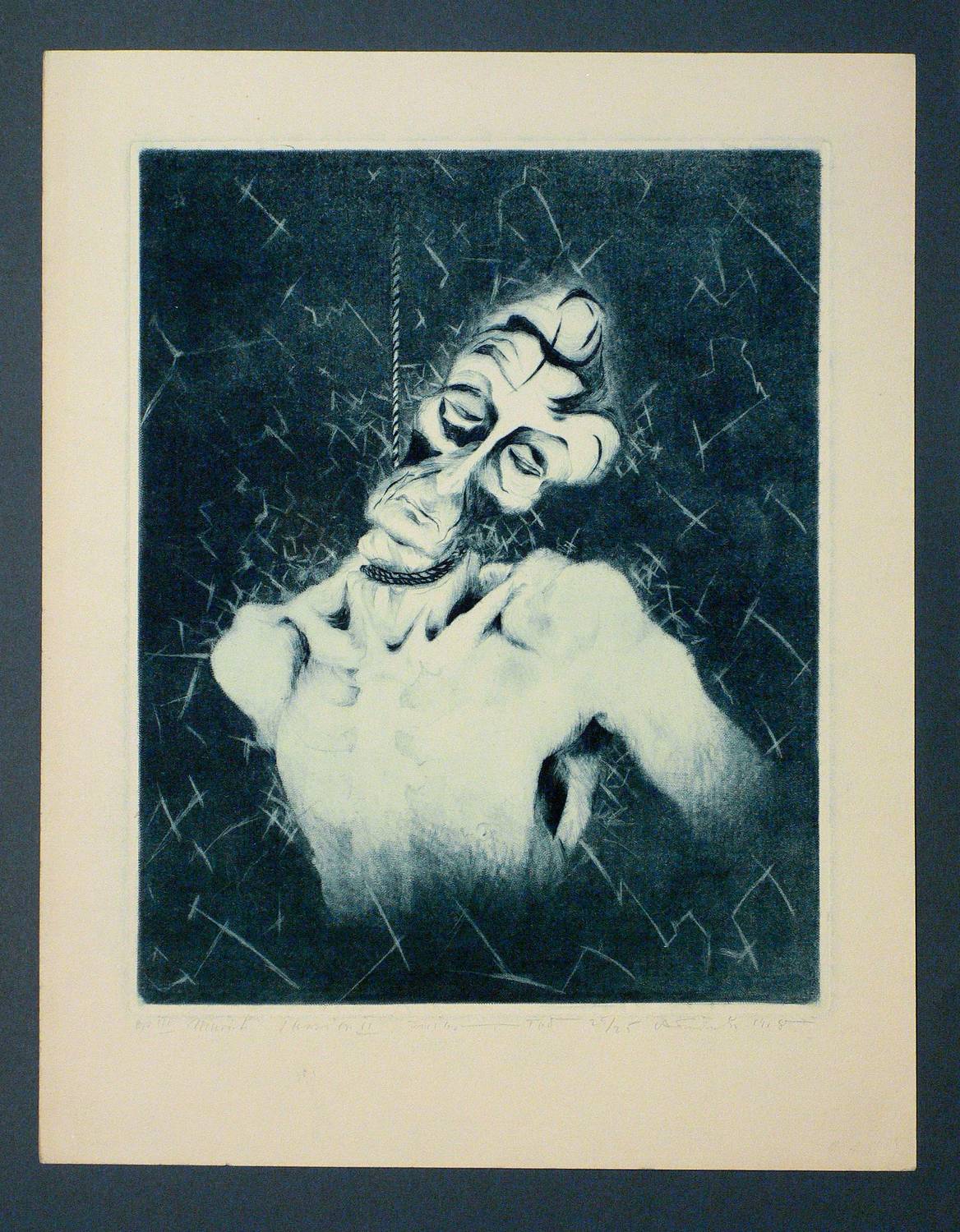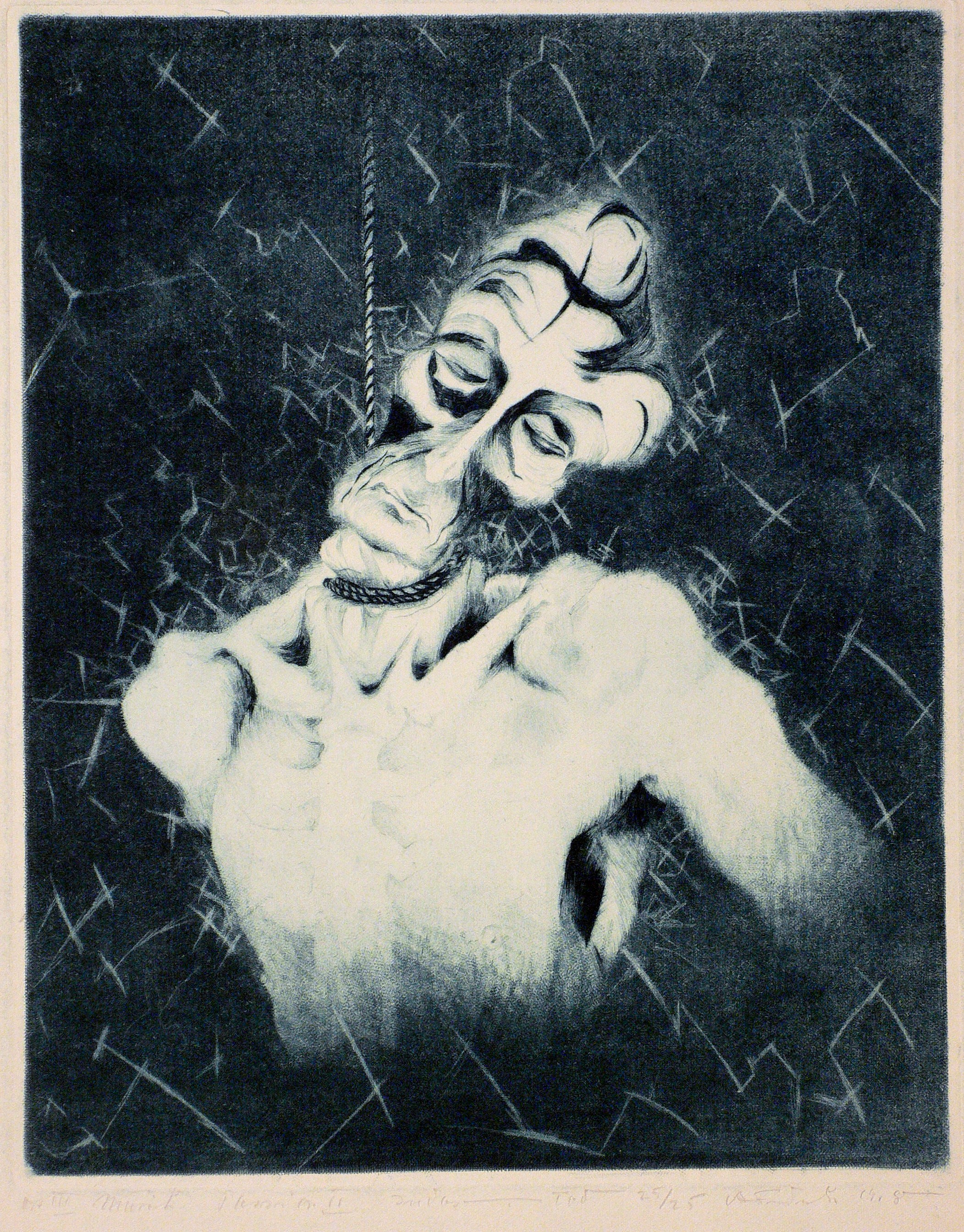 1918. Radierung / Strichätzung & Roulette, in Blau, auf gelblichem Kupferdruckkarton. – Originale Künstlergrafik, von Alexander Friedrich. – Auflage Exemplar Nr. 25/25. – 29,2 x 23,0 cm (Darstellung), 29,8 x 23,8 cm (Platte), 40 x 30 cm (Blatt).