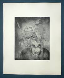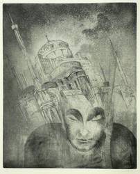 1920. Radierung / Strichätzung & Aquatinta, in Schwarz, auf gelbem Kupferdruckkarton. – Originale Künstlergrafik, von Alexander Friedrich. – Auflage Exemplar Nr. 19/60. – 29,8 x 24,6 cm (Darstellung / Platte), 50 x 40 cm (Blatt).