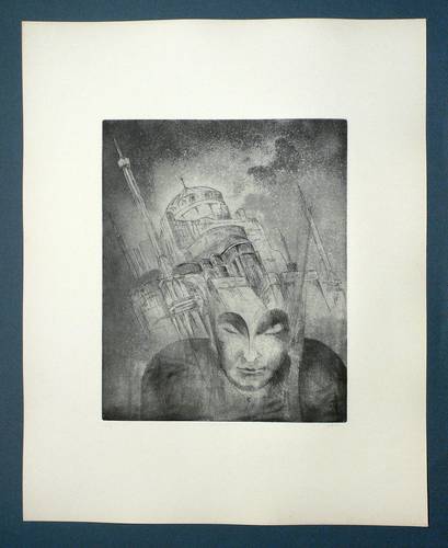 Alexander Friedrich (1895 Hamburg - 1968 Hamburg). Deutscher Radierkünstler, Holzschneider und Mosaizist des frühen Expressionismus in Hamburg. 1913-18 Schüler von Carl Otto Czeschka in Hamburg. Friedrich war Mitglied der expressionistischen Künstlergruppe "Kräfte" in Hamburg (mit Kinner von Dresler, Paul Adolf Seehaus, Andreas Luksch und Peter Luksch). Zu seinen Künstlerfreunden zählte Johannes Wüsten, der ihn porträtierte und ihm seine Erzählung "Ywon - Eine Geschichte vom doppelten Leben" widmete. Seine stark dem Expressionismus verpflichteten Bilderfindungen bewegen sich zwischen realistischer Naturschilderung und bizarrer Phantastik. Seine grafischen Mappenwerke (darunter Faust II, Musik, Inkarnationen, In aspectu orbis, Der Stein & Schwerindustrie) gelten aufgrund der niedrigen Auflagen als selten. In der Radierung neigte er zum experimentellen Ausweiten technischer Grenzen. Er beschäftigte sich mit Hercules Pieterszoon Seghers und der Geschichte des Tiefdrucks, wozu er das Buch "Handlung und Gestalt des Kupferstiches und der Radierung" (Essen: Fredebeul & Koenen 1931) veröffentlichte.