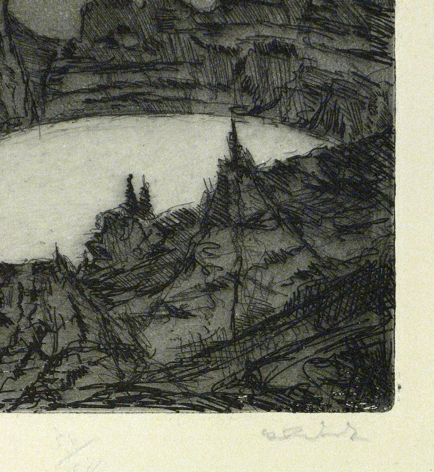 1920. Radierung / Strichätzung & Aquatinta, in Schwarz, auf gelbem Kupferdruckkarton. – Originale Künstlergrafik, von Alexander Friedrich. – Auflage Exemplar Nr. 33/60. – 29,8 x 24,6 cm (Darstellung / Platte), 50 x 40 cm (Blatt).