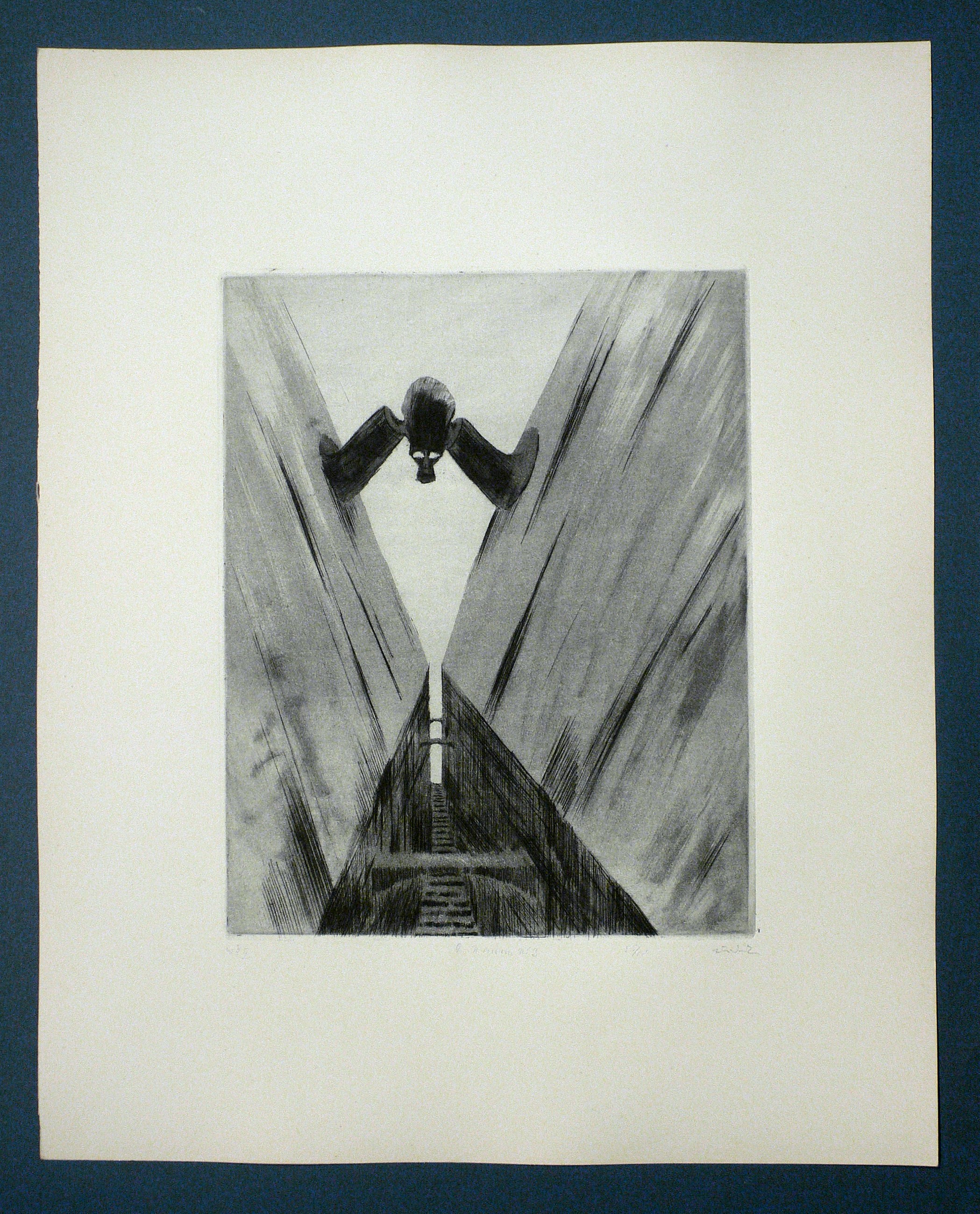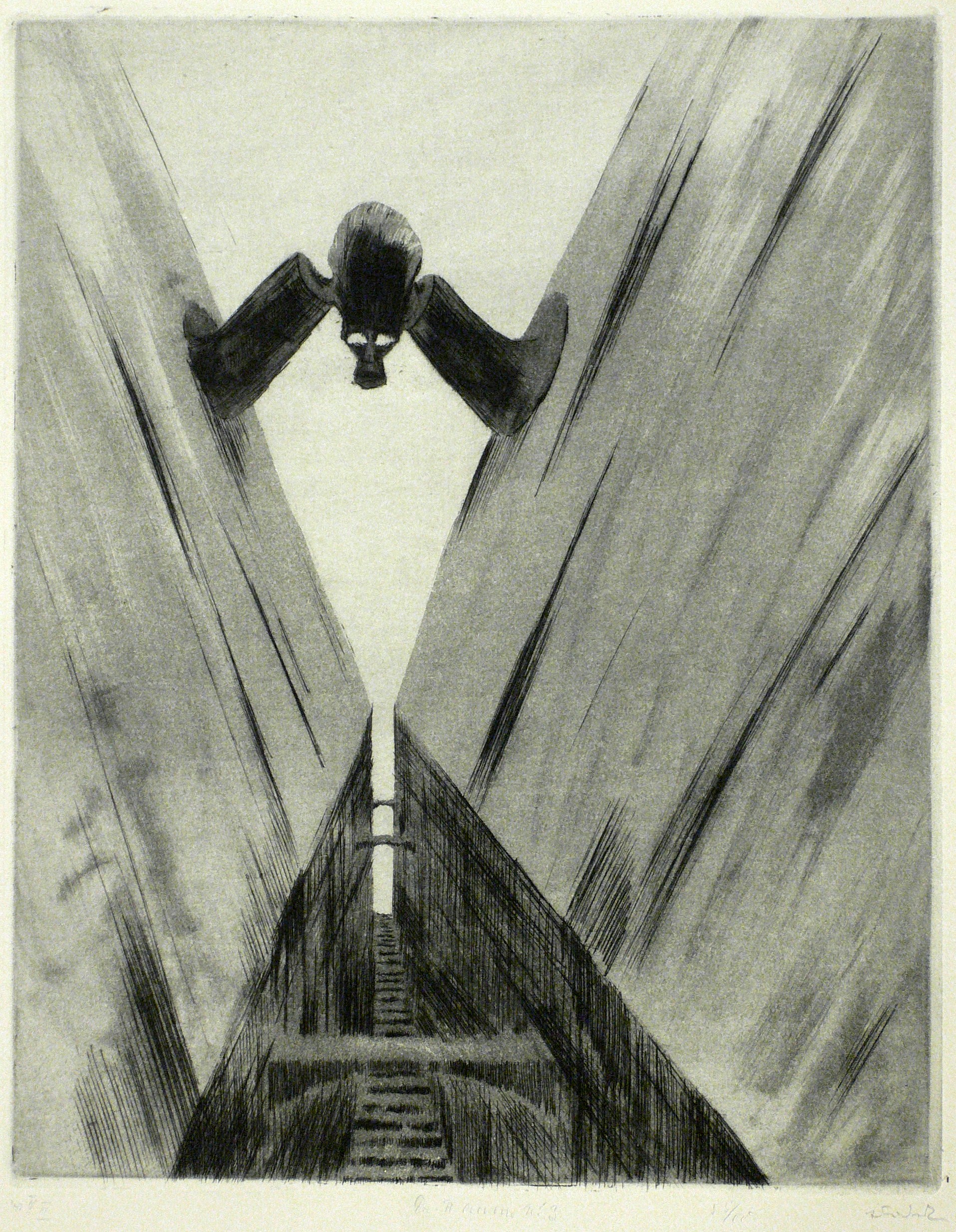 1920. Radierung / Strichätzung & Aquatinta, in Schwarz, auf gelbem Kupferdruckkarton. – Originale Künstlergrafik, von Alexander Friedrich. – Auflage Exemplar Nr. 55/60. – 29,8 x 24,6 cm (Darstellung / Platte), 50 x 40 cm (Blatt).