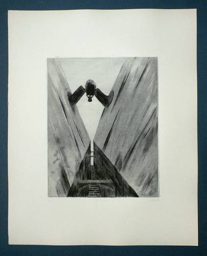 Alexander Friedrich (1895 Hamburg - 1968 Hamburg). Deutscher Radierkünstler, Holzschneider und Mosaizist des frühen Expressionismus in Hamburg. 1913-18 Schüler von Carl Otto Czeschka in Hamburg. Friedrich war Mitglied der expressionistischen Künstlergruppe "Kräfte" in Hamburg (mit Kinner von Dresler, Paul Adolf Seehaus, Andreas Luksch und Peter Luksch). Zu seinen Künstlerfreunden zählte Johannes Wüsten, der ihn porträtierte und ihm seine Erzählung "Ywon - Eine Geschichte vom doppelten Leben" widmete. Seine stark dem Expressionismus verpflichteten Bilderfindungen bewegen sich zwischen realistischer Naturschilderung und bizarrer Phantastik. Seine grafischen Mappenwerke (darunter Faust II, Musik, Inkarnationen, In aspectu orbis, Der Stein & Schwerindustrie) gelten aufgrund der niedrigen Auflagen als selten. In der Radierung neigte er zum experimentellen Ausweiten technischer Grenzen. Er beschäftigte sich mit Hercules Pieterszoon Seghers und der Geschichte des Tiefdrucks, wozu er das Buch "Handlung und Gestalt des Kupferstiches und der Radierung" (Essen: Fredebeul & Koenen 1931) veröffentlichte.