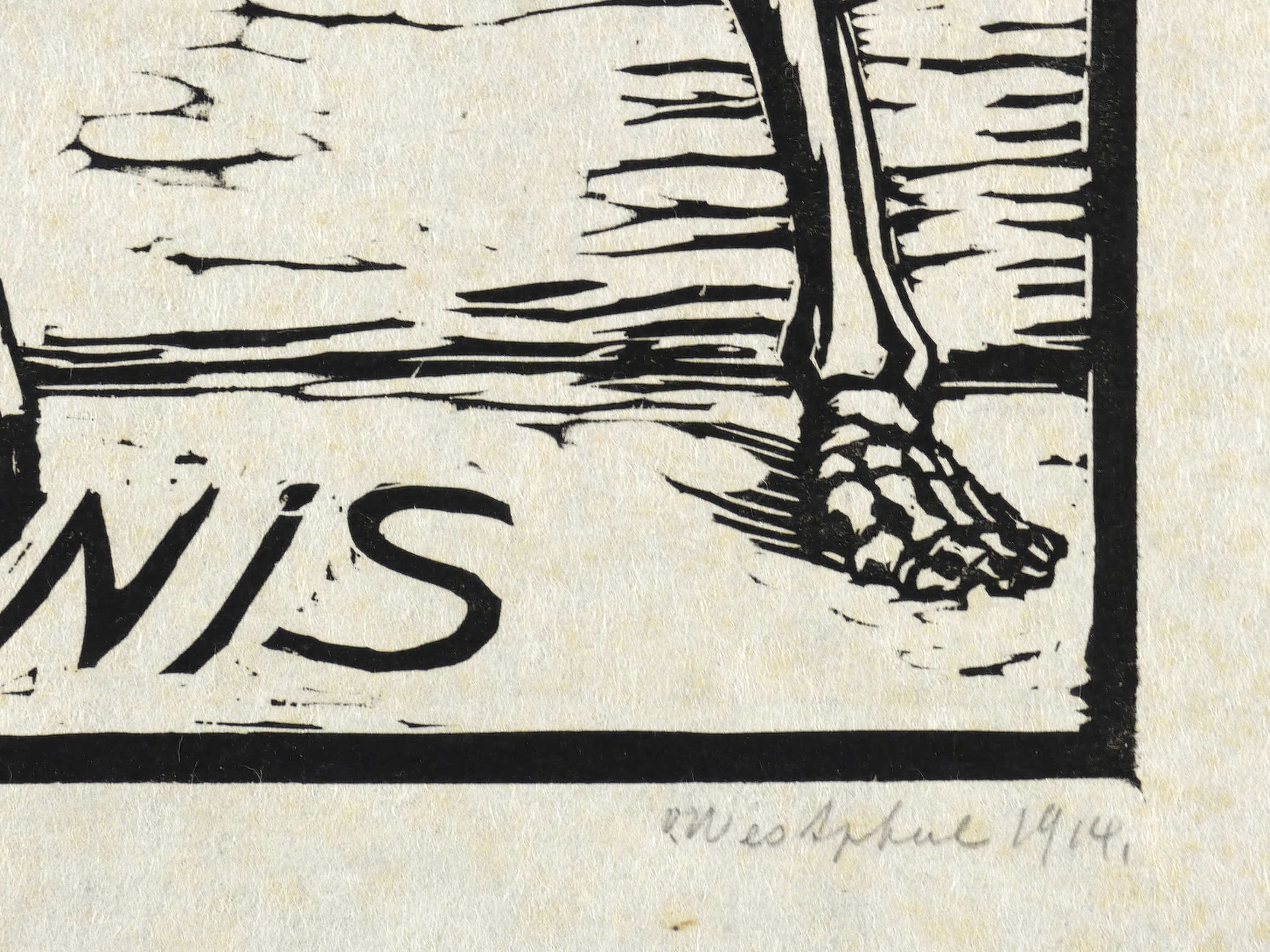 1914. Holzschnitt, in Schwarz, auf gelblichem Japanbütten. – Originale Künstlergrafik, von Otto Westphal. – 27,0 x 19,9 cm (Darstellung / Platte), 42 x 31 cm (Blatt).