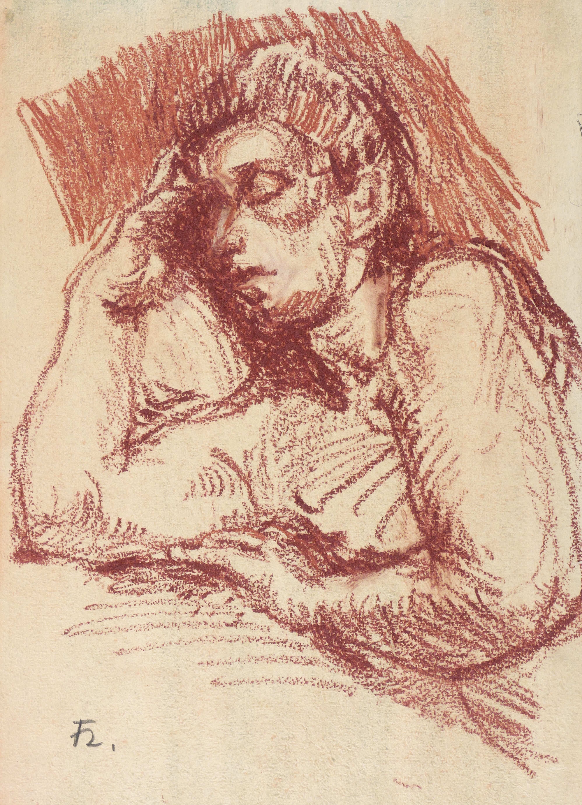 1930-1940. Zeichnung / Kreidezeichnung, in Rötelton, auf kräftigem Karton. – Originale Künstlergrafik, von Joachim Heuer. – Unikat. – 46,0 x 31,0 cm (Darstellung / Blatt).