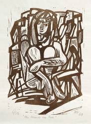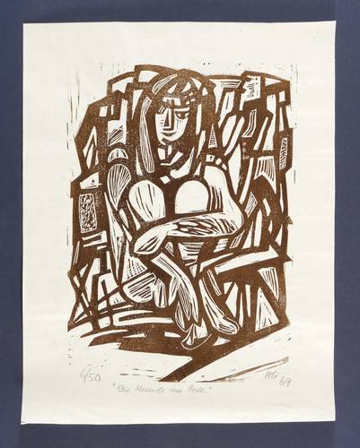 1969. Holzschnitt, in Braun, auf dünnem glattem Papier. – Originale Künstlergrafik, von Hilde Goldschmidt. – Auflage Exemplar Nr. 6/50. – 35,3 x 25,2 cm (Darstellung / Druckstock), 45 x 35 cm (Blatt).