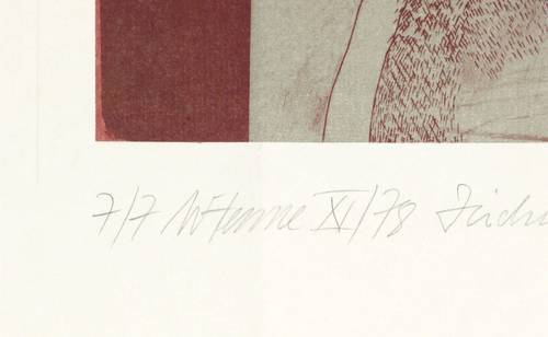 Links unten in Bleistift signiert und datiert. Dazu Auflagenbezeichnung und Titel. – Schwach ausgeprägte vertikale Knickspur. Insgesamt mäßig guter Zustand.