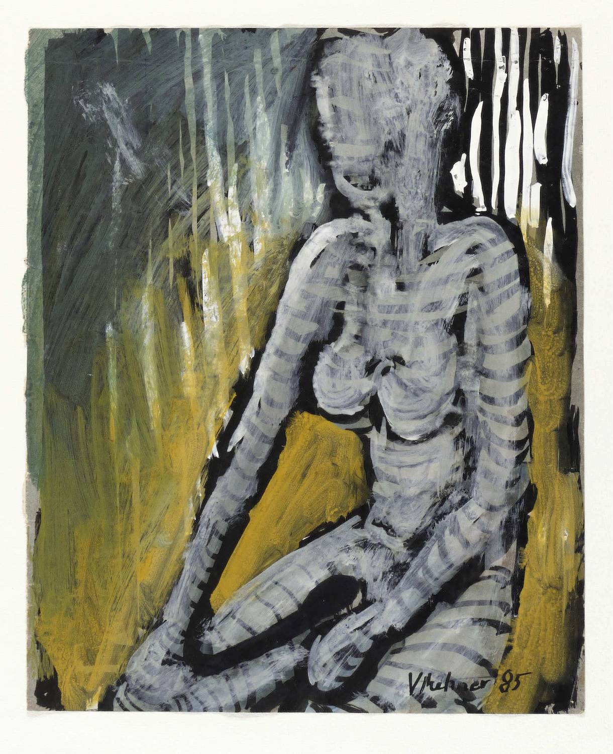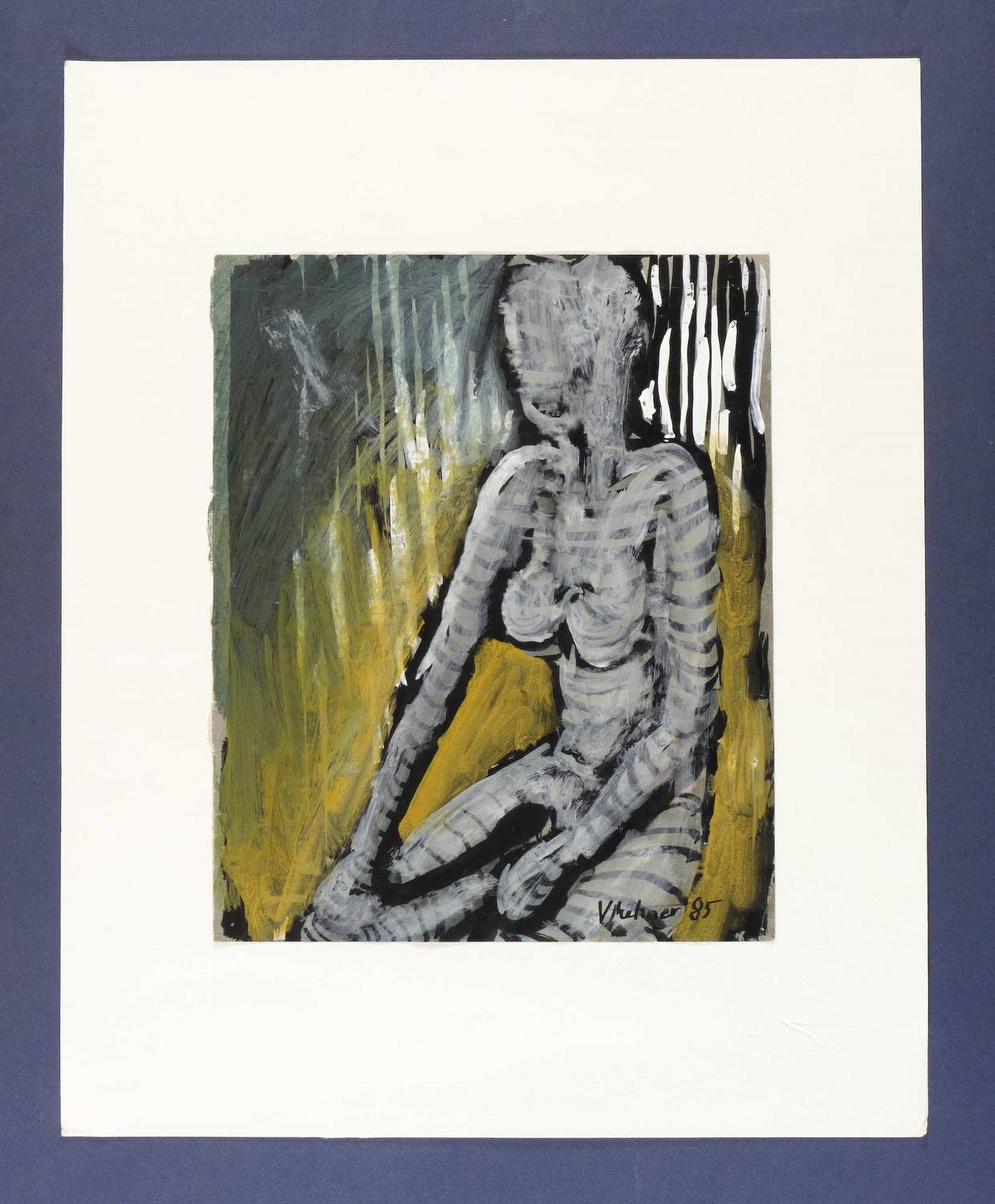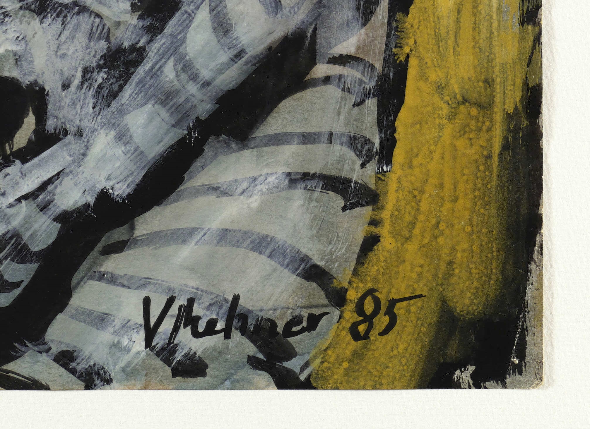 1985. Mischtechnik / Ölfarben, Tusche & Gouache, auf Papier. – Originale Künstlergrafik, von Volker Mehner. – Unikat. – 31,8 x 25,9 cm (Darstellung / Blatt), 50 x 40 cm (Trägerblatt).