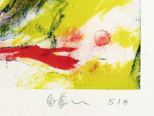 2012. Algrafie, in drei Farben, auf Büttenpapier. – Originale Künstlergrafik, von Frank Hoffmann. – Auflage Exemplar Nr. 5/8. – 18,0 x 20,5 cm (Darstellung), 27,5 x 38,0 cm (Blatt).