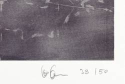 2012. Algrafie, in zwei Farben, auf Büttenpapier. – Originale Künstlergrafik, von Frank Hoffmann. – Auflage Exemplar Nr. 38/50. – 18,0 x 37,8 cm (Darstellung), 38,5 x 54,0 cm (Blatt).
