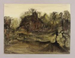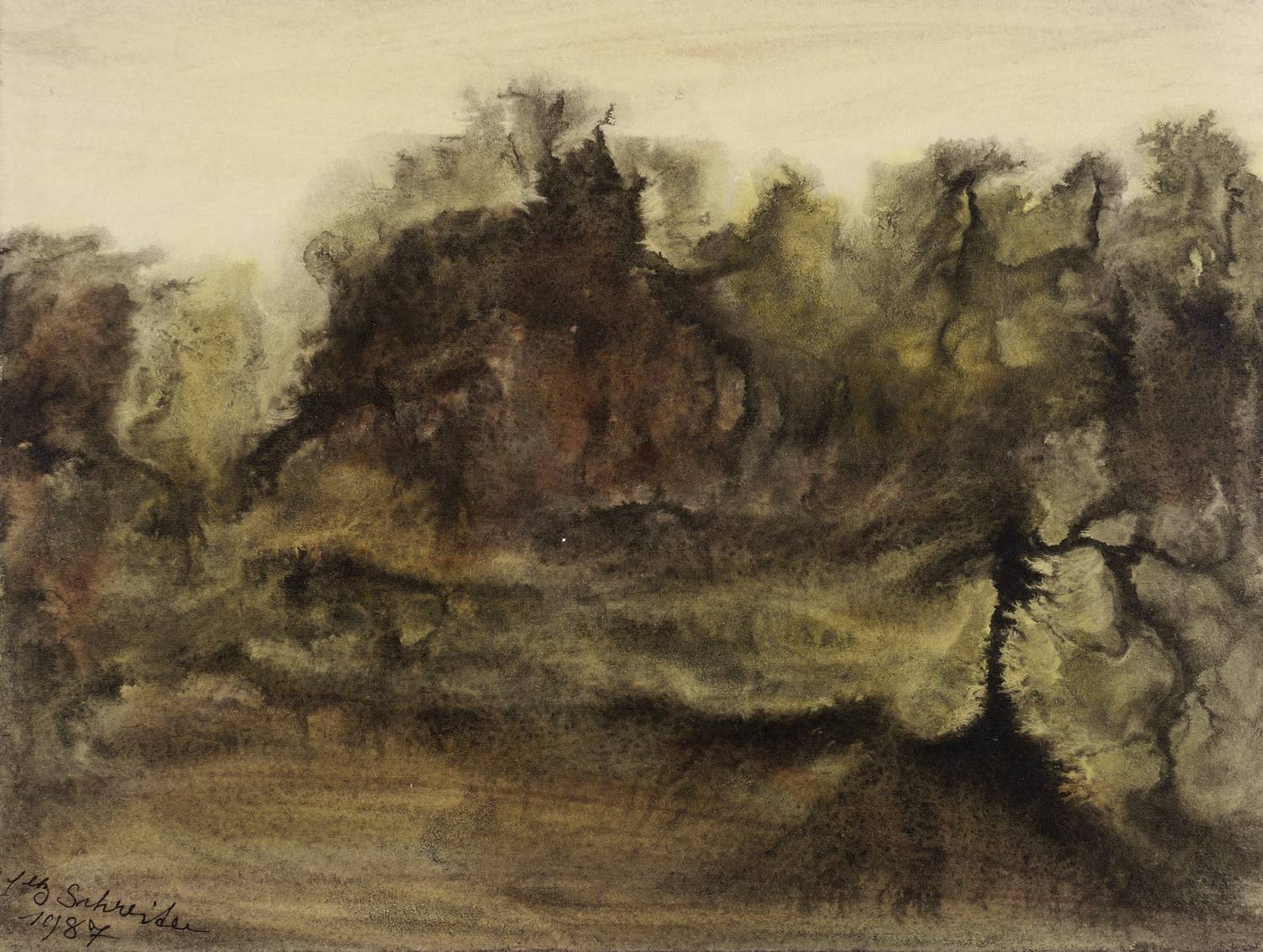 1987. Zeichnung / Pinselzeichnung, in brauner Tusche, auf starkem hellem Velinkarton. – Originale Künstlergrafik, von Elly Schreiter. – Unikat. – 23,8 x 31,7 cm (Darstellung / Blatt).