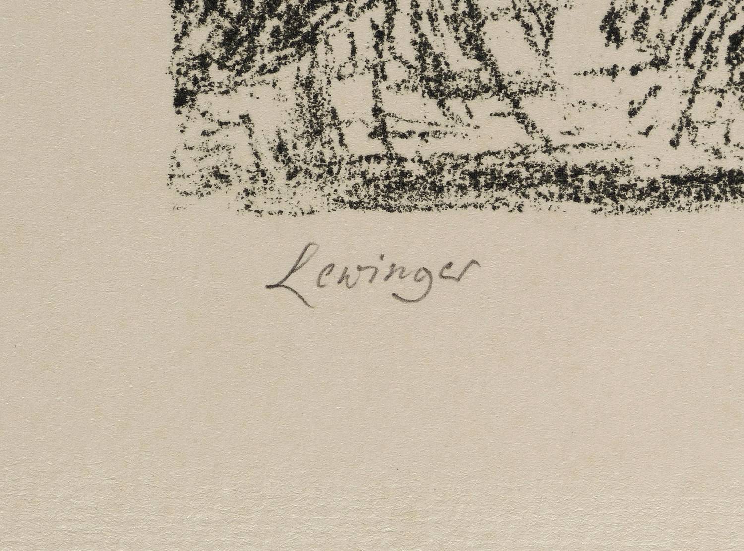 Links unten in Bleistift signiert: ″Lewinger″. Rechts datiert: ″1980″. Mittig Auflagenbezeichnung und Titel: ″1/58 / Flußlandschaft″. – Sehr guter Zustand.