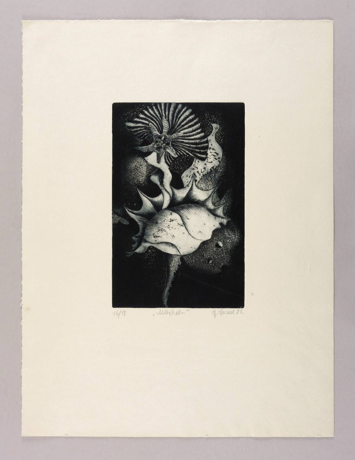 Rechts unten in Bleistift signiert und datiert: ″J. Seidel 82″. Links Auflagenbezeichnung: ″16/18″. Mittig Titel: ″Muscheln″. – Sehr guter Zustand.