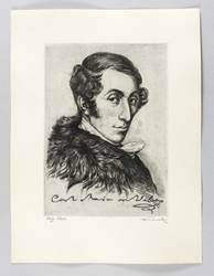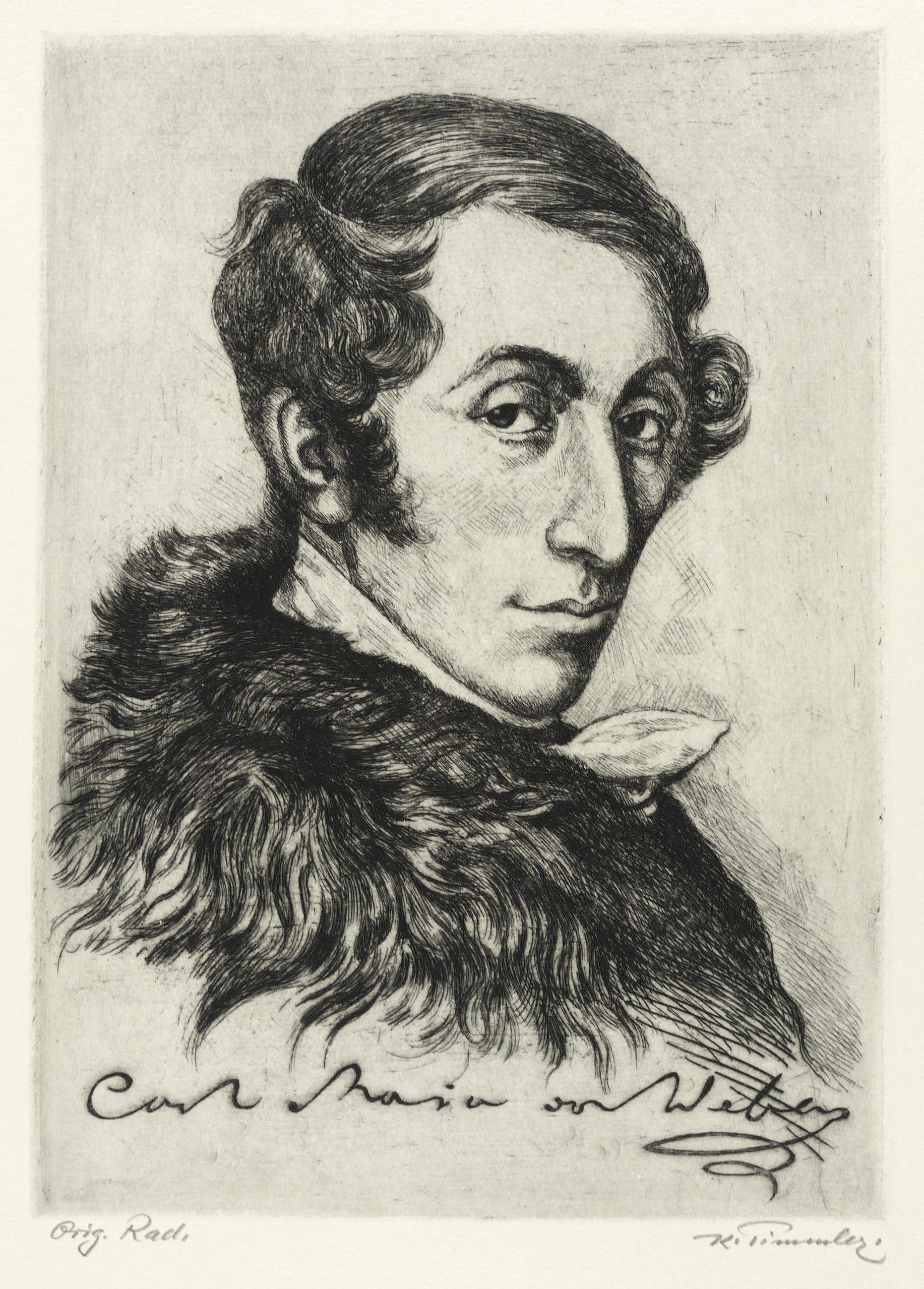 Carl Maria von Weber (1786 Eutin / Schleswig-Holstein - 1826 London). Deutscher Komponist, Dirigent und Pianist. 1804 bis 1806 Kapellmeister in Breslau, 1813-16 Operndirektor am Ständetheater in Prag, ab 1817 Königlicher Kapellmeister und Direktor der deutschen Oper am Dresdner Hoftheater. Seine bekannteste Oper "Der Freischütz" entstand 1817-20 in Dresden und wurde 1821 unter seiner Leitung im Berliner Schauspielhaus am Gendarmenmarkt uraufgeführt.
