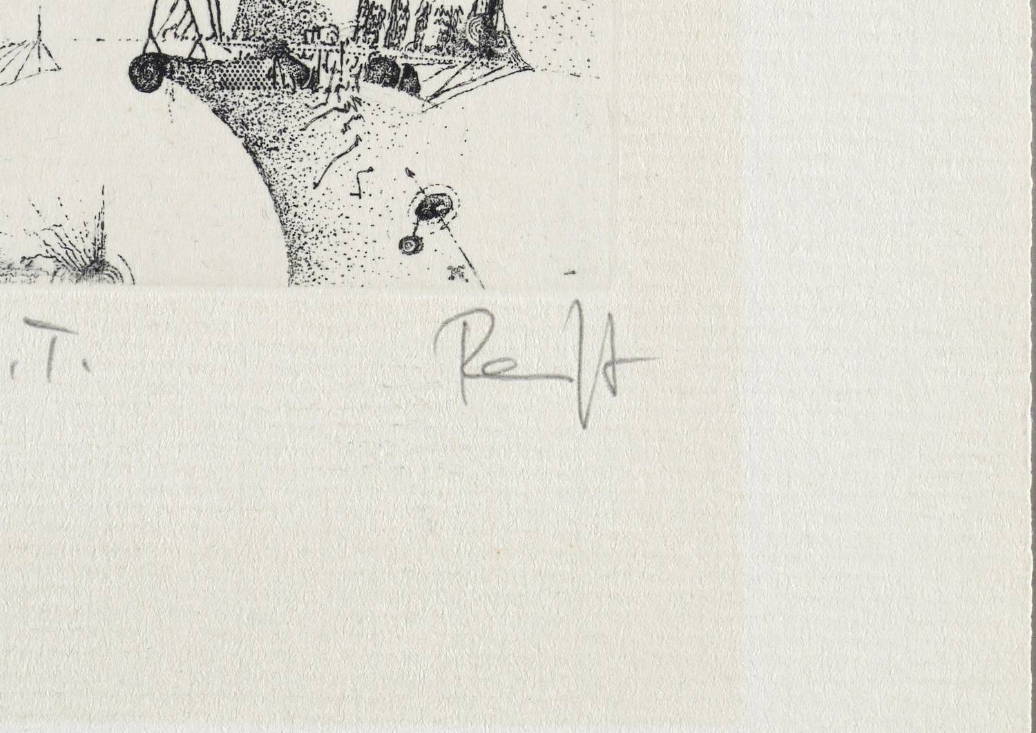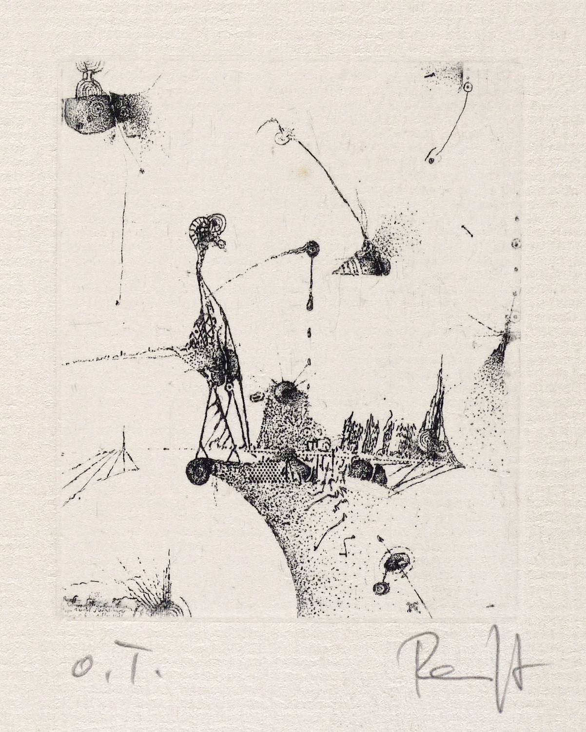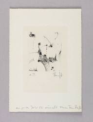1982. Radierung / Strichätzung, in Schwarz, auf festem gelblichem Maschinenbütten. – Originale Künstlergrafik, von Thomas Ranft. – 6,0 x 5,0 cm (Darstellung / Platte), 16 x 11 cm (Blatt).
