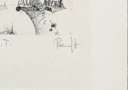 Thomas Ranft (*1945 Königsee/Thüringen, lebt und arbeitet in Chemnitz). Deutscher Grafiker. Nach einer Tätigkeit als Baumschulgärtner in Weimar und Markkleeberg studierte er von 1967 bis 1972 an der Hochschule für Grafik und Buchkunst Leipzig. 1972 zog er nach Karl-Marx-Stadt (heute Chemnitz). Auf seine Initiative hin gründeten er, Carlfriedrich Claus, Michael Morgner und Dagmar Ranft-Schinke die Künstlergruppe Clara Mosch (1977-1982) in Adelsberg, einem Stadtteil von Chemnitz. 1985 begegnete er erstmals Ernst Jandl. Später illustrierte er Jandls Werk "der beschriftete sessel". Von 1986 bis 1989 lehrte er an der Fachschule für angewandte Kunst in Schneeberg. Seit 1993 ist er Mitglied der Freien Akademie der Künste zu Leipzig. 2003 erhielt er den Hans-Theo-Richter-Preis der Sächsischen Akademie der Künste.