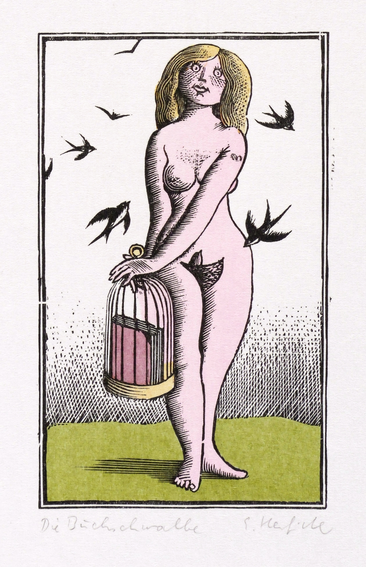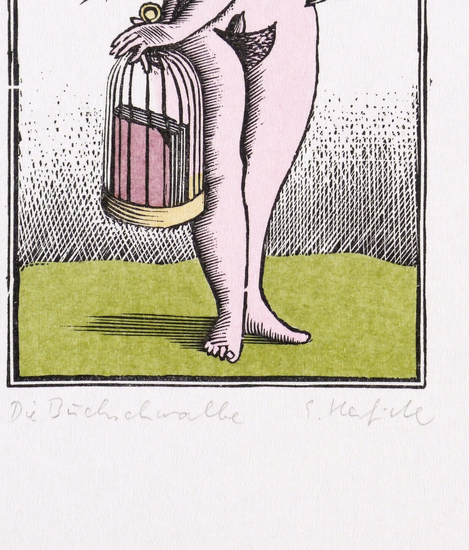 Rechts unten in Bleistift signiert: ″E. Herfurth″. Links Titel: ″Die Buchschwalbe″. – Sehr guter Zustand.