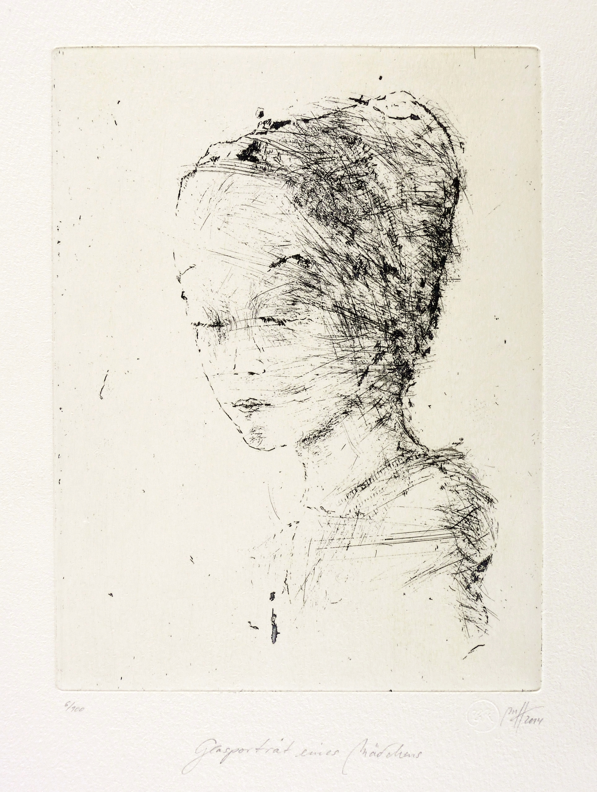 Rechts unten in Bleistift signiert und datiert: ″MH 2014″. Links Auflagenbezeichnung: ″6/100″. Mittig darunter Titel: ″Glasporträt eines Mädchens″. – Sehr guter Zustand.