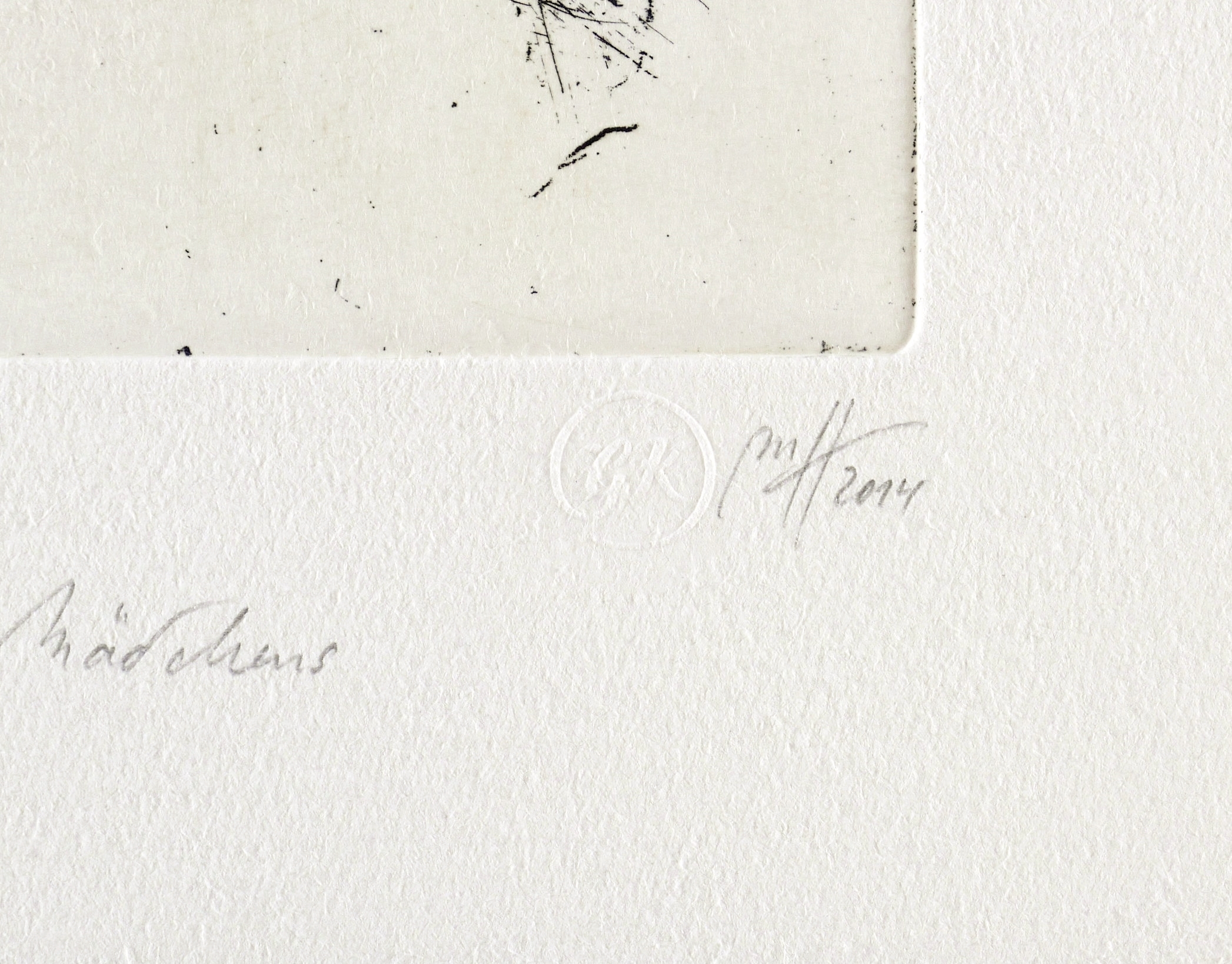 2014. Radierung / Kaltnadel & Roulette, in Schwarz, auf rauem hellchamois Hahnemühle. – Originale Künstlergrafik, von Madeleine Heublein. – Auflage Exemplar Nr. 6/100. – 19,8 x 14,9 cm (Darstellung / Platte), 27 x 20 cm (Blatt).