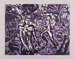 2013. Farblinolschnitt, in Violett & Schwarz, auf hellchamois Velinkarton. – Originale Künstlergrafik, von Christine Wahl. – 22,1 x 27,8 cm (Darstellung / Blatt).