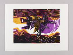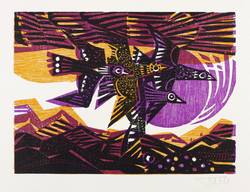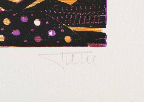 1983. Farbholzschnitt, in Orange, Violett & Schwarz, auf weißem Werkdruckkarton. – Originale Künstlergrafik, von Alfred Pohl. – 16,1 x 22,0 cm (Darstellung / Druckstock), 22 x 30 cm (Blatt).