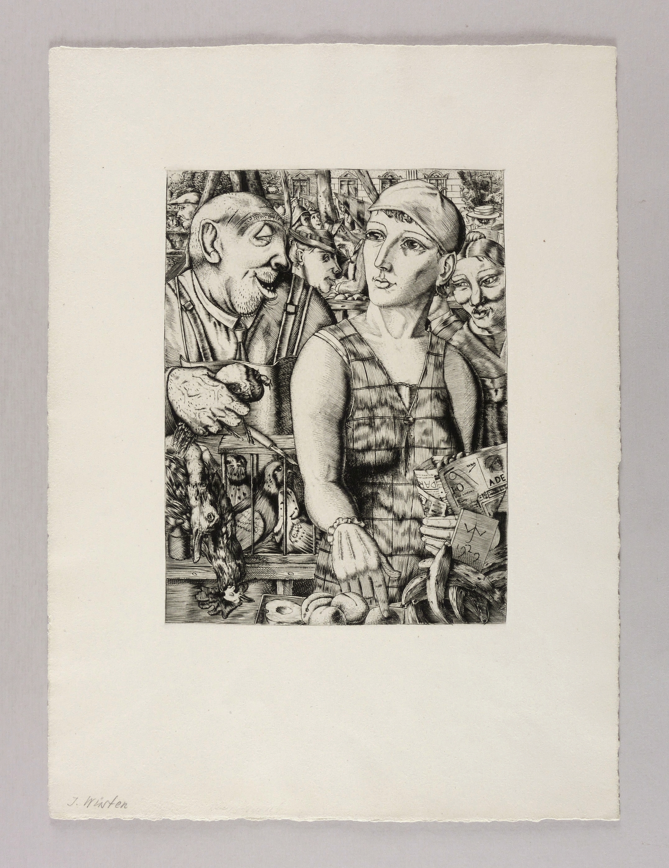Nicht handsigniert. In der linken unteren Blattecke in Bleistift bezeichnet: ″J. Wüsten″. In der Platte rechts unten ligiertes Monogramm und Jahr: ″JW 1929″. – Sehr guter Zustand.