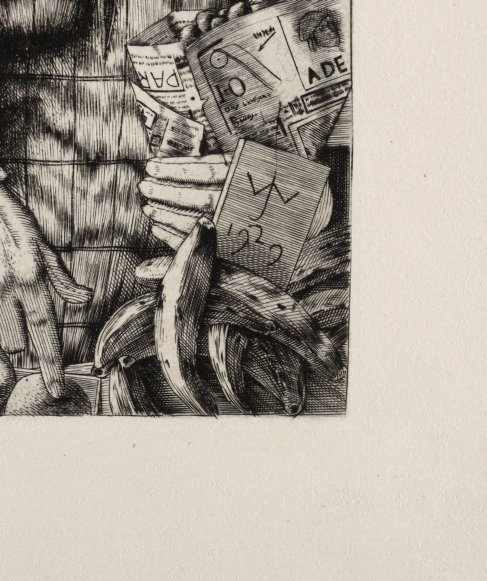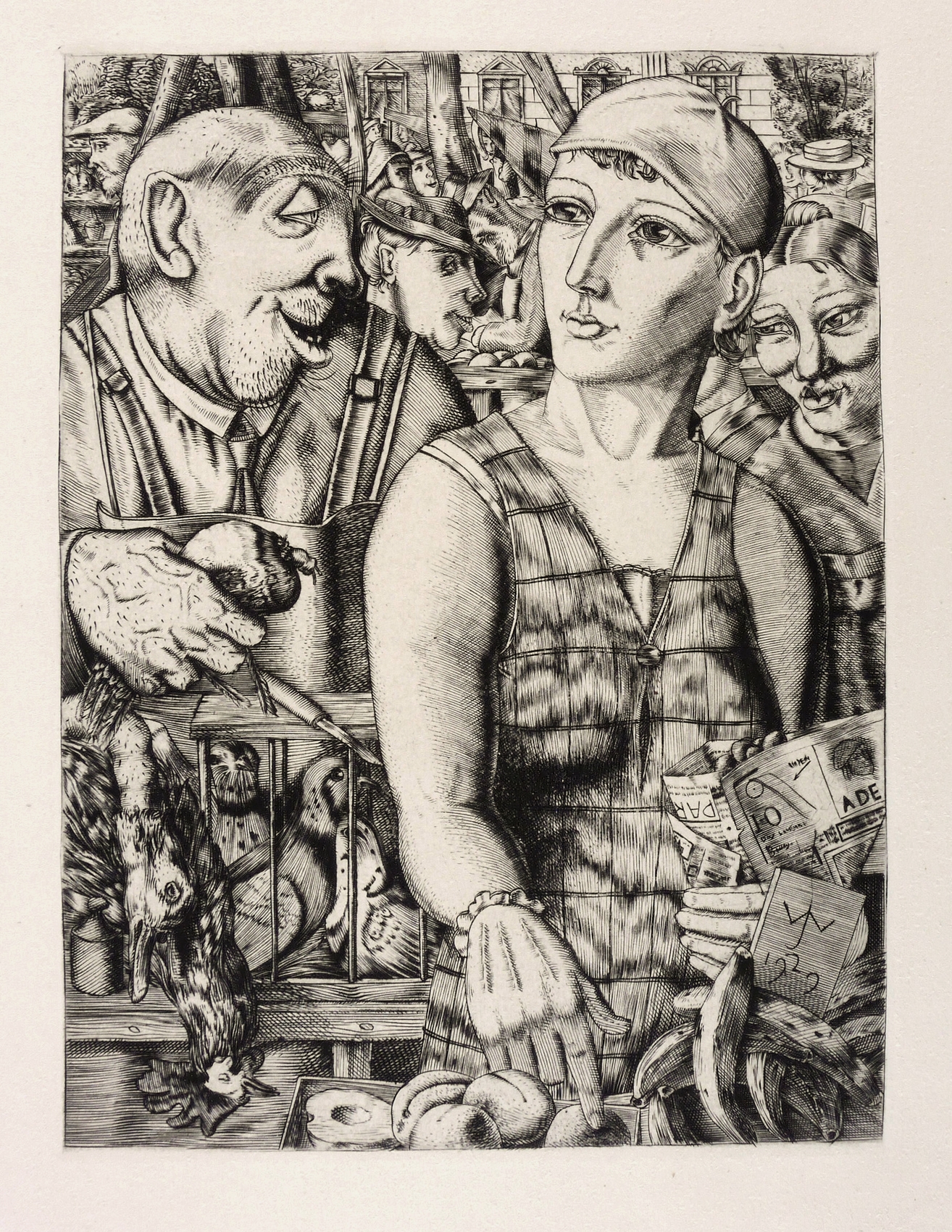 1929. Kupferstich / Linienstich, in Schwarz, auf rauem gräulich-gelbem Bütten. – Originale Künstlergrafik, von Johannes Wüsten. – 23,4 x 17,6 cm (Darstellung / Platte), 40 x 30 cm (Blatt).