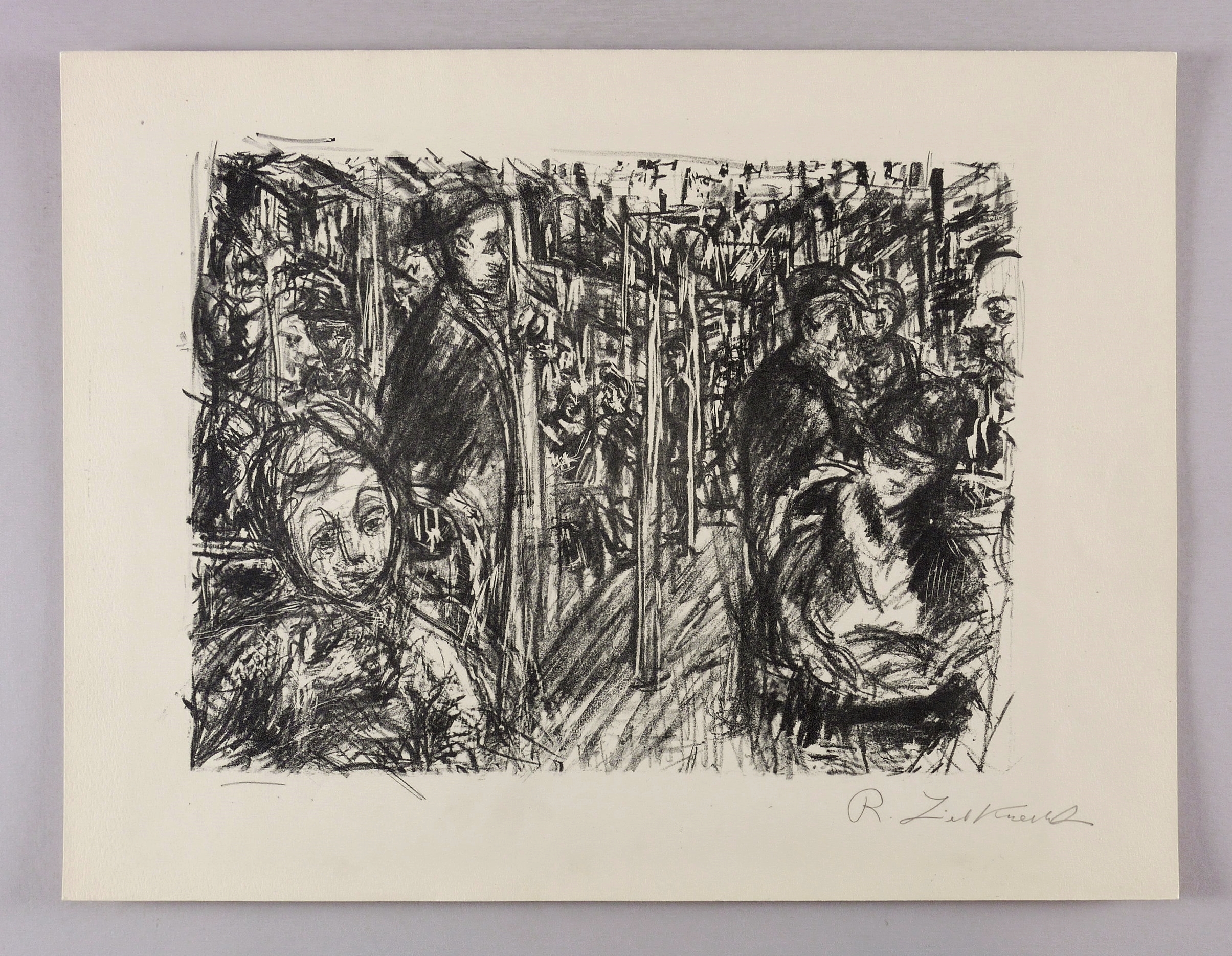 Rechts unten in Bleistift signiert: ″R. Liebknecht″. – Interieur der Sprague-Thomson Waggons der Pariser Metro um 1950. – Sehr guter Zustand.