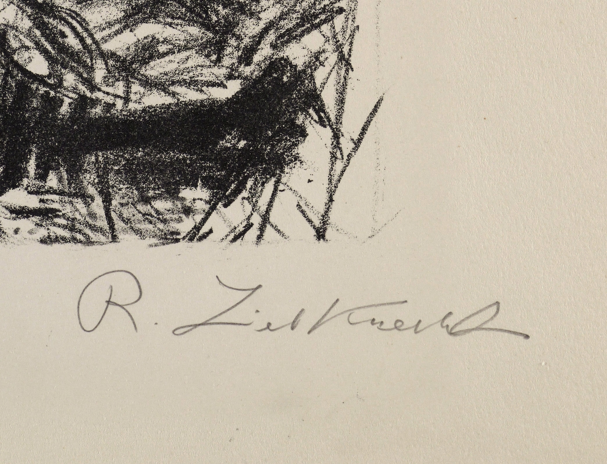 Um 1950. Lithografie / Kreidelithografie, in Schwarz, auf gelblichem Velinkarton. – Originale Künstlergrafik, von Robert Liebknecht. – 30,0 x 37,5 cm (Darstellung / Druckbild), 38 x 50 cm (Blatt).